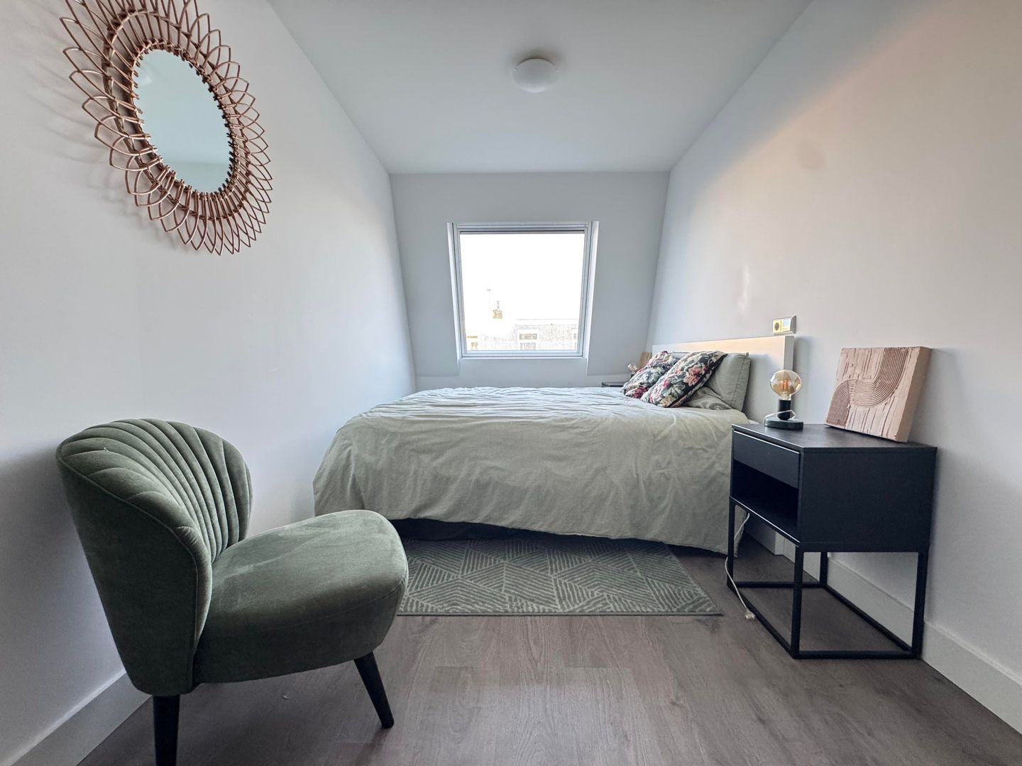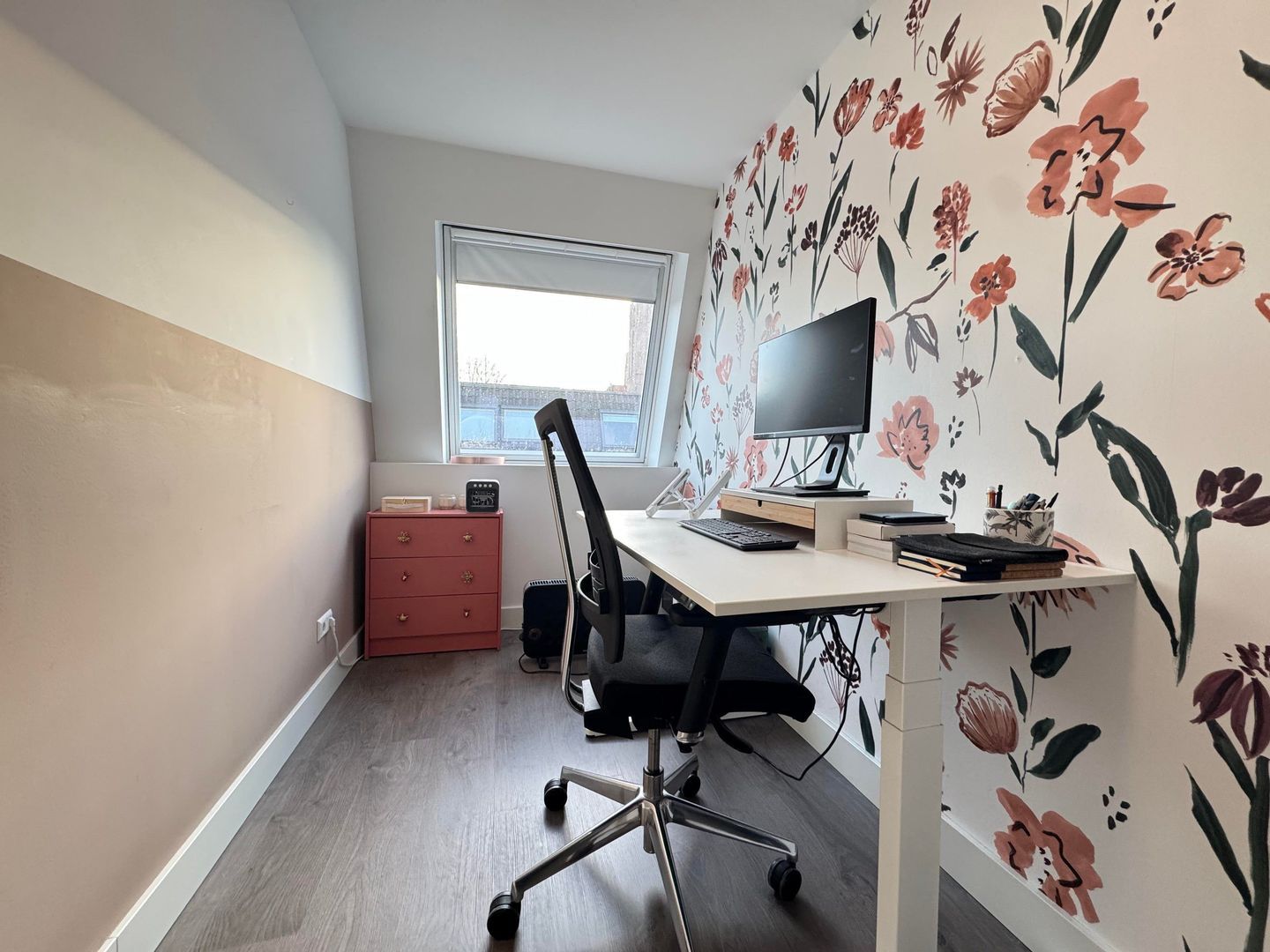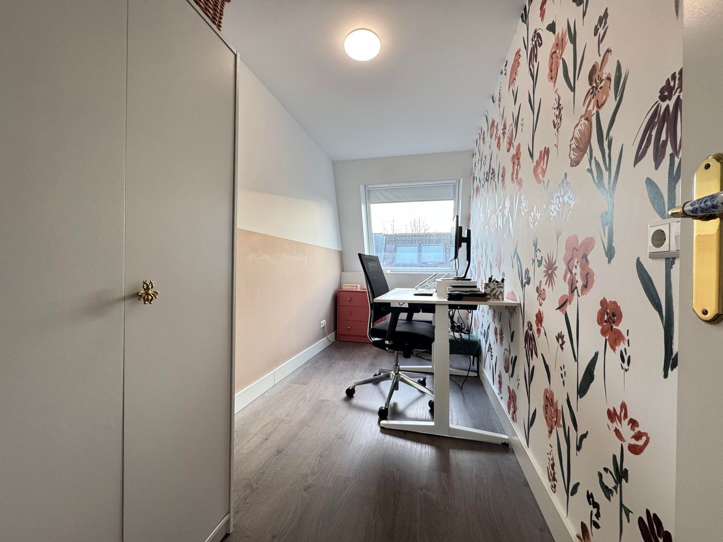 The attic floor features a third bedroom and a small study, perfect as a work or hobby room. Here you'll also find the washing machine and dryer, neatly tucked away and easily accessible.