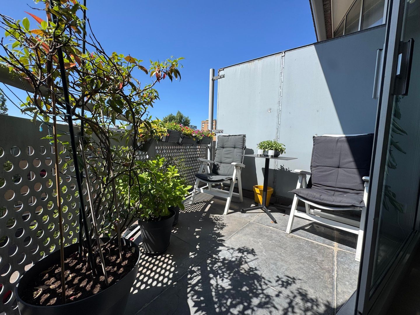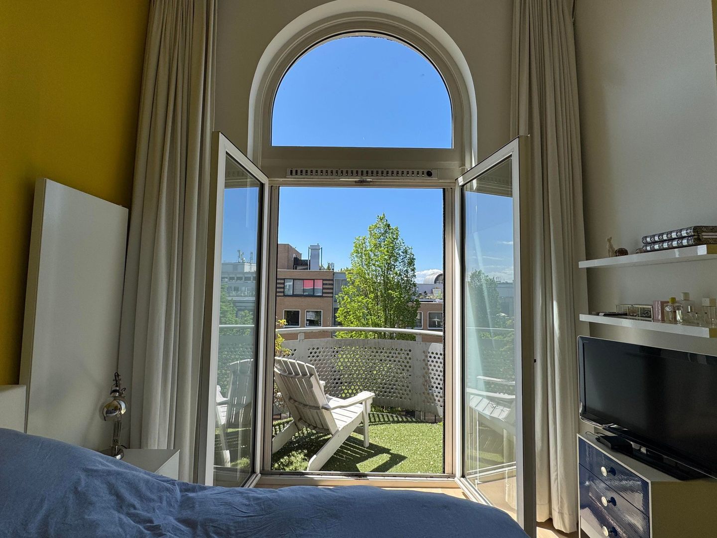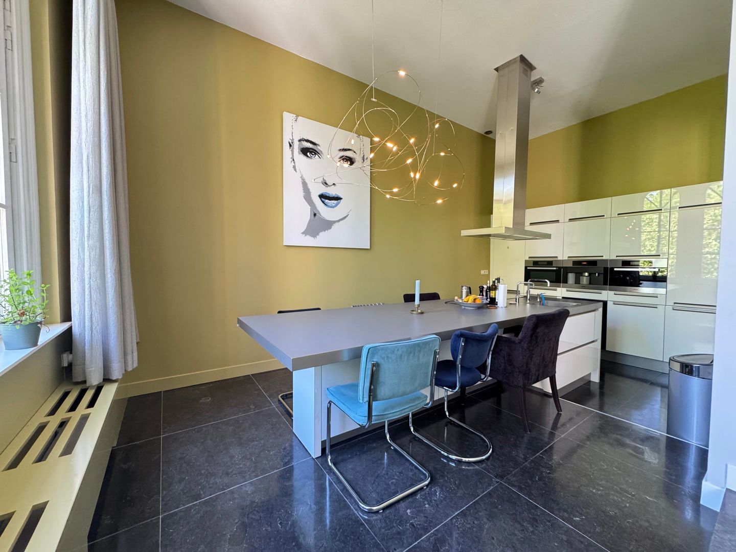 Second floor: spacious living room with luxurious half-open kitchen with an amazing view over the Catharijnesingel. The kitchen is equipped with all conceivable appliances such as built-in coffee machine, wine fridge, oven and microwave. The cooking island with continuous top is perfect for dining. Spacious study with access to west-facing terrace/balcony with afternoon and evening sun. The balcony has blinds. Bedroom with many closets and access to the second balcony. Modern and luxurious bathroom fitted with very spacious walk-in shower, double washbasin, cupboard and washing machine and dryer. Separate toilet.