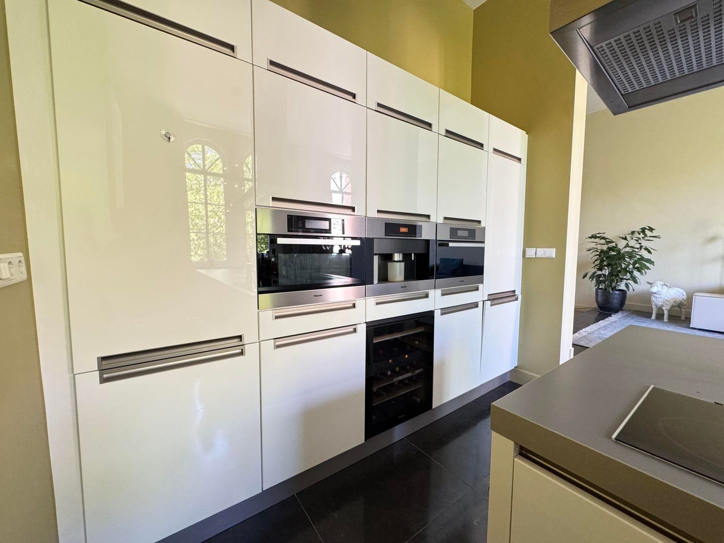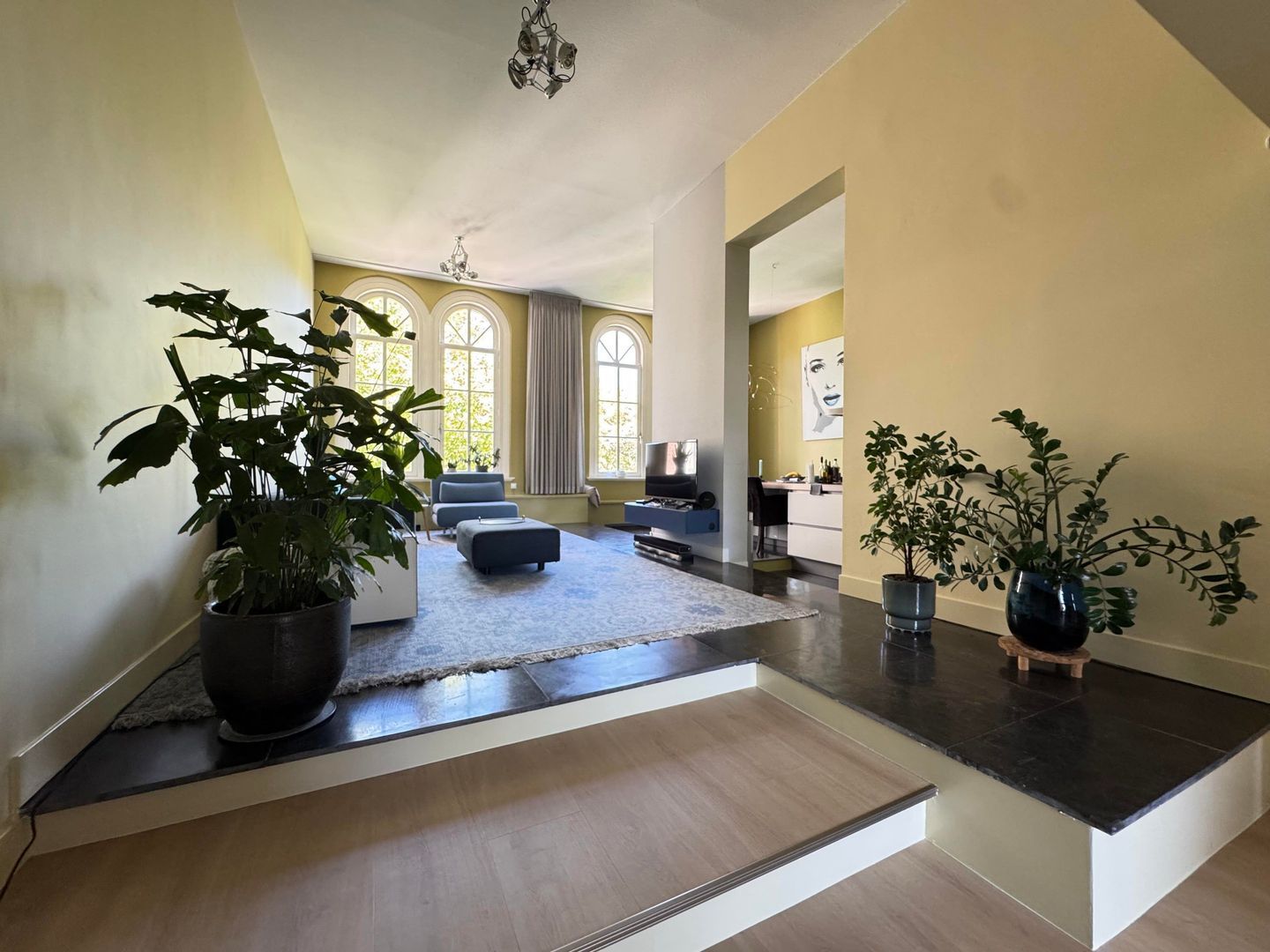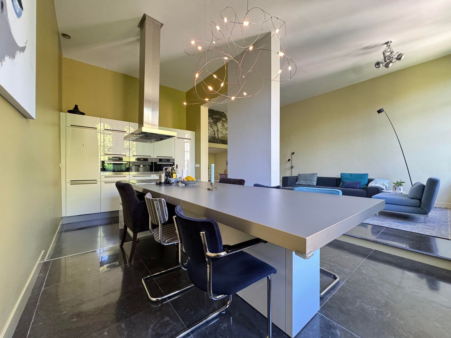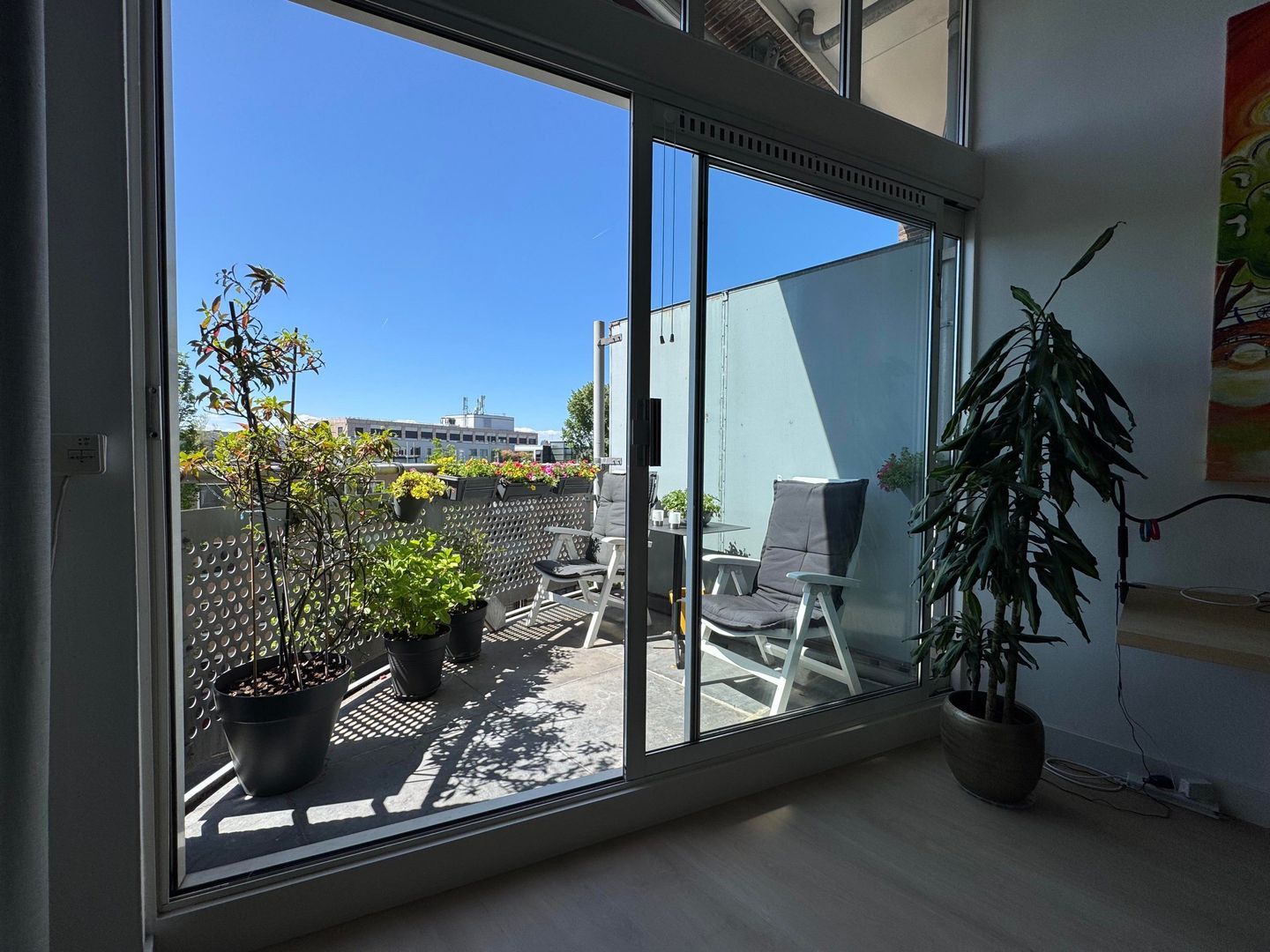 Second floor: spacious living room with luxurious half-open kitchen with an amazing view over the Catharijnesingel. The kitchen is equipped with all conceivable appliances such as built-in coffee machine, wine fridge, oven and microwave. The cooking island with continuous top is perfect for dining. Spacious study with access to west-facing terrace/balcony with afternoon and evening sun. The balcony has blinds. Bedroom with many closets and access to the second balcony. Modern and luxurious bathroom fitted with very spacious walk-in shower, double washbasin, cupboard and washing machine and dryer. Separate toilet.