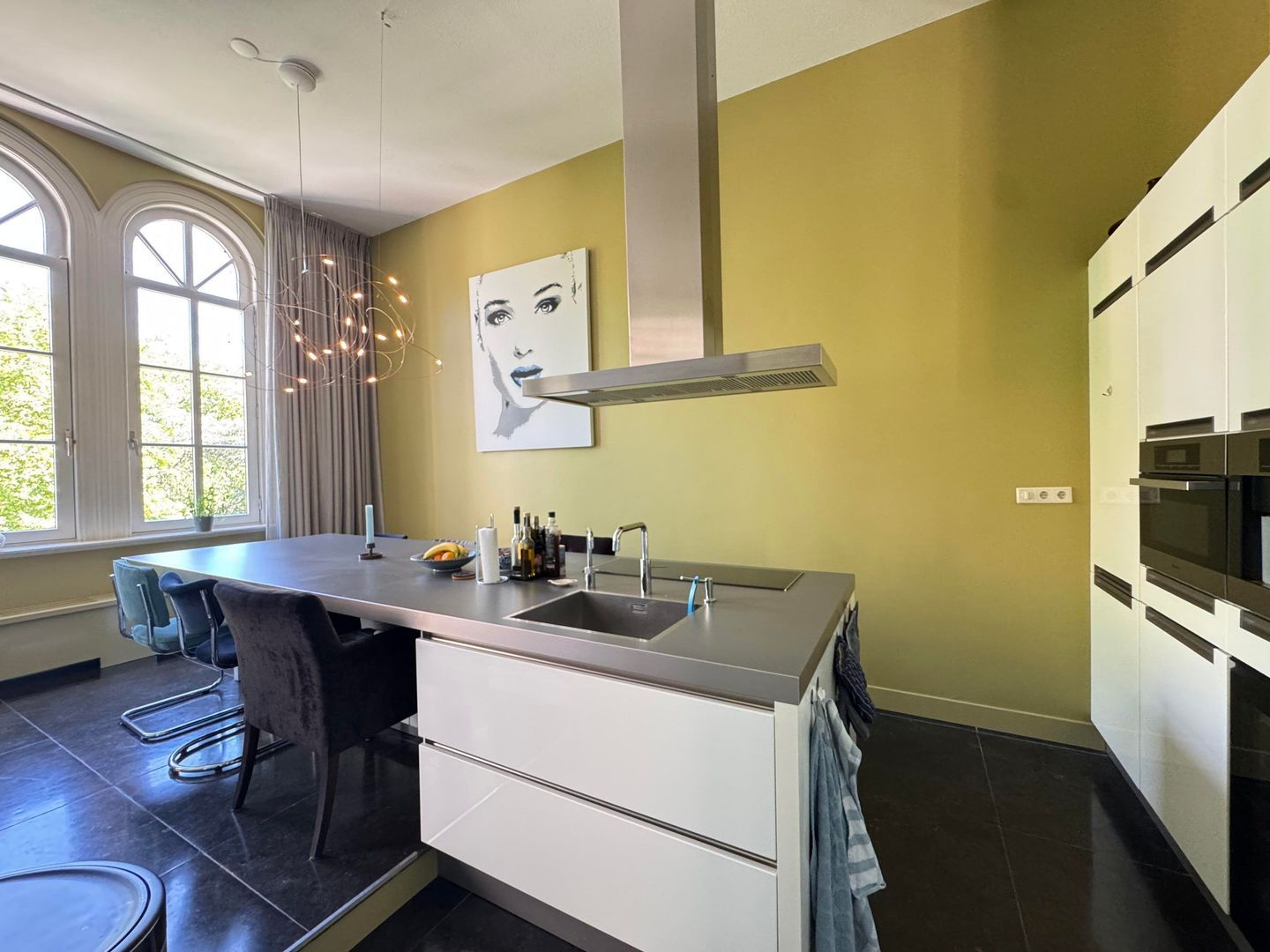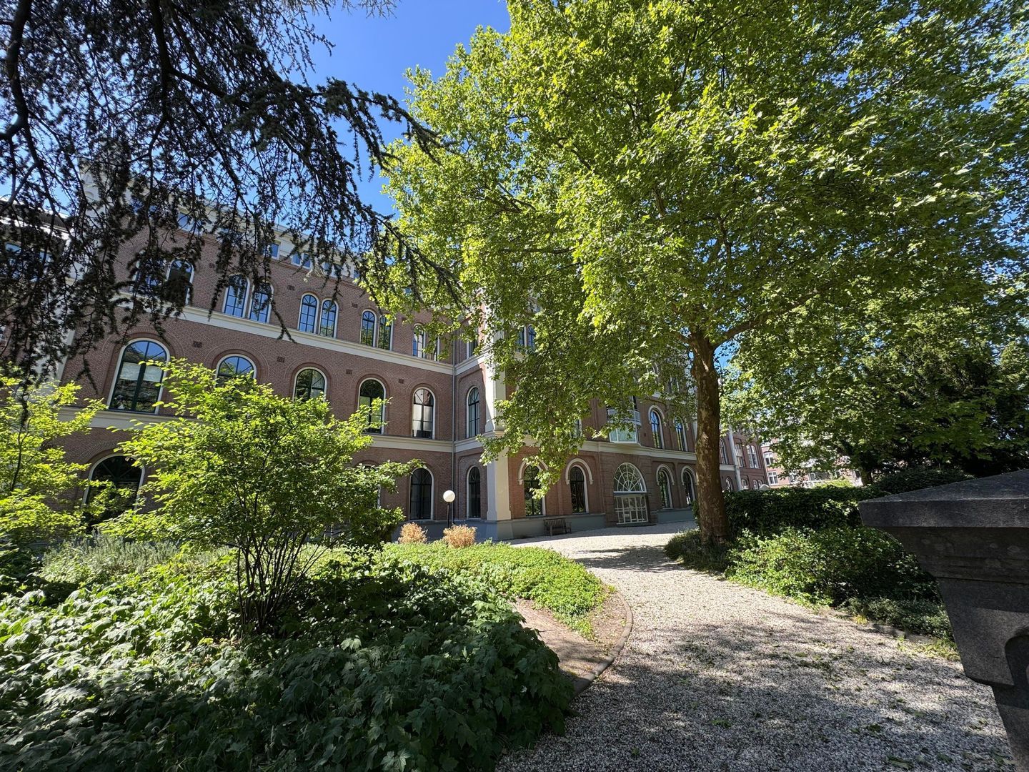 Engelenschild is the former main building of the hospital complex, which was still in use until 1988. This stately main building is characterised by high ceilings and a beautifully authentic façade. Since 1990, the building has been transformed into a high-quality apartment complex, whereby the high ceilings have been preserved in many flats, including this one. The complex is surrounded by a (private) park-like garden with several benches to enjoy the view.