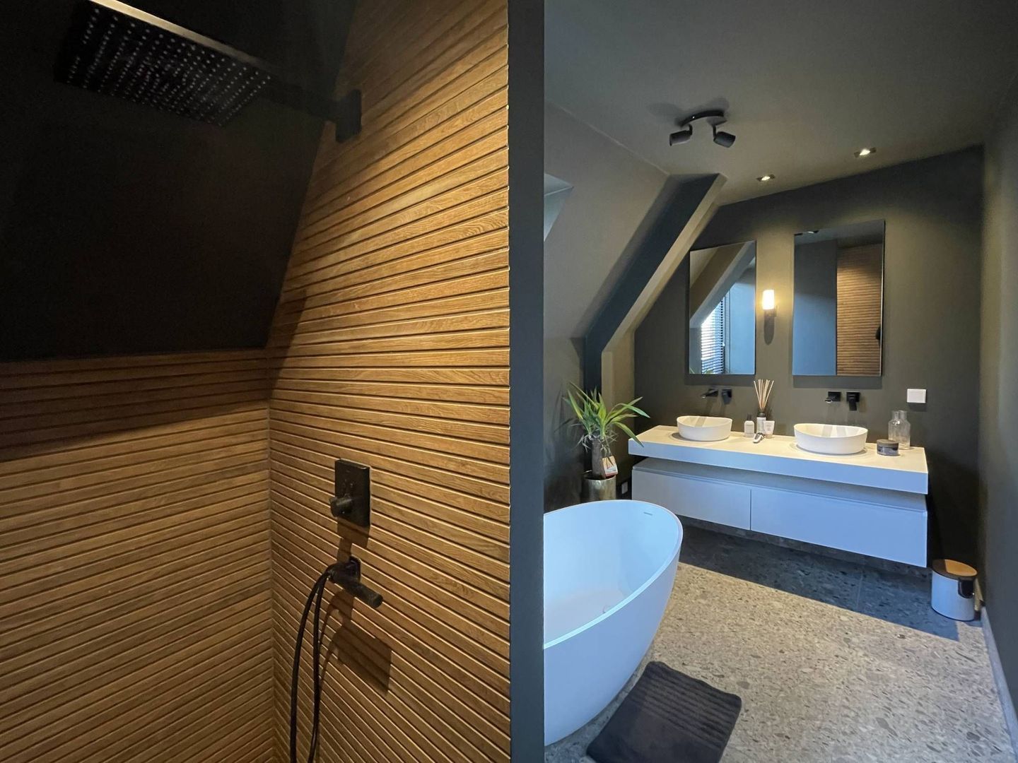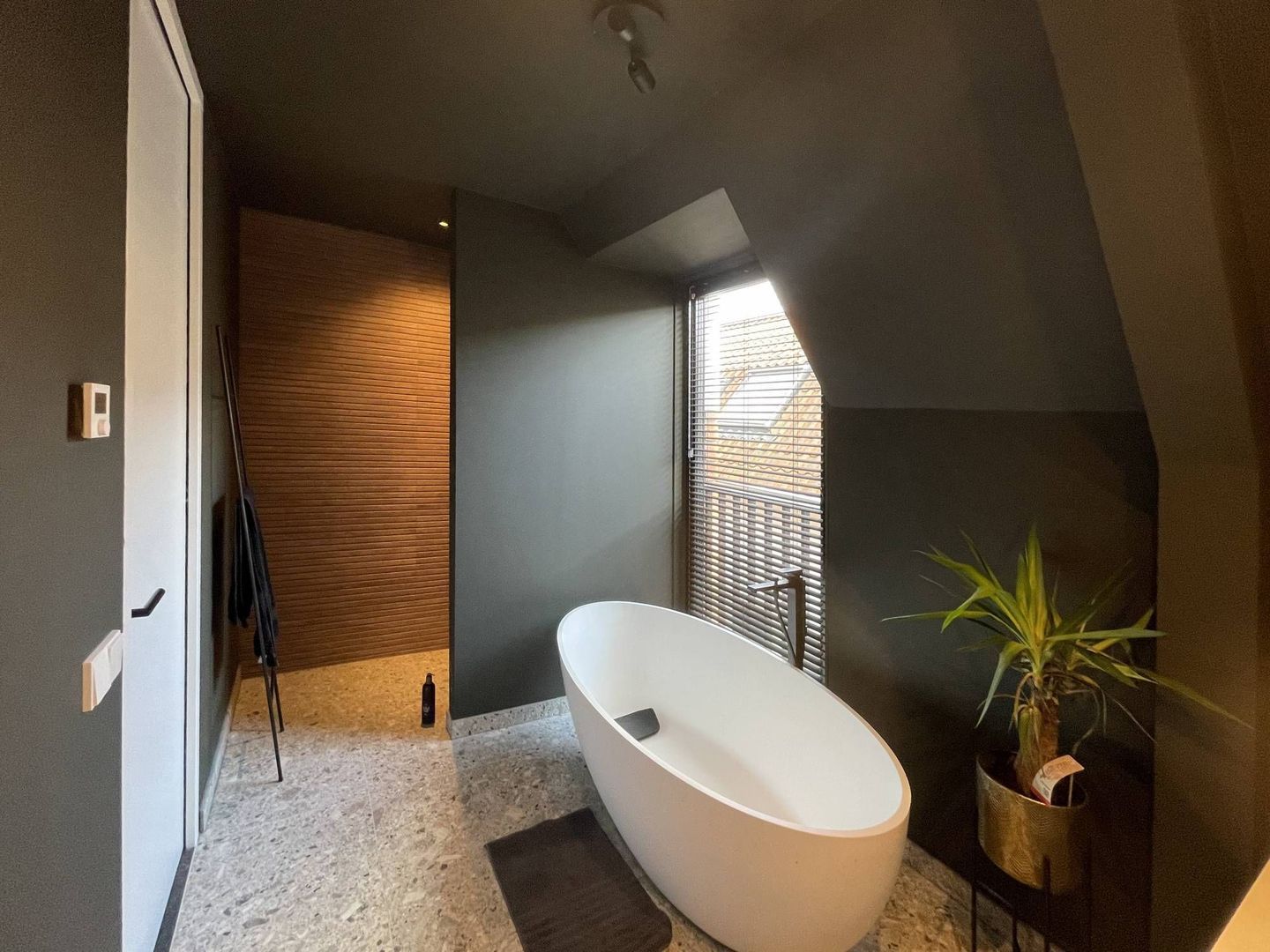 From the living room/kitchen there is access to the first floor. On the first floor, the landing, a spacious modern bathroom with freestanding bath, double sink, separate shower. Two spacious bright bedrooms. Separate toilet. Stairs to attic room where again a lovely spacious bedroom has been created. This bedroom has a spacious comfortable rain shower and a sink.