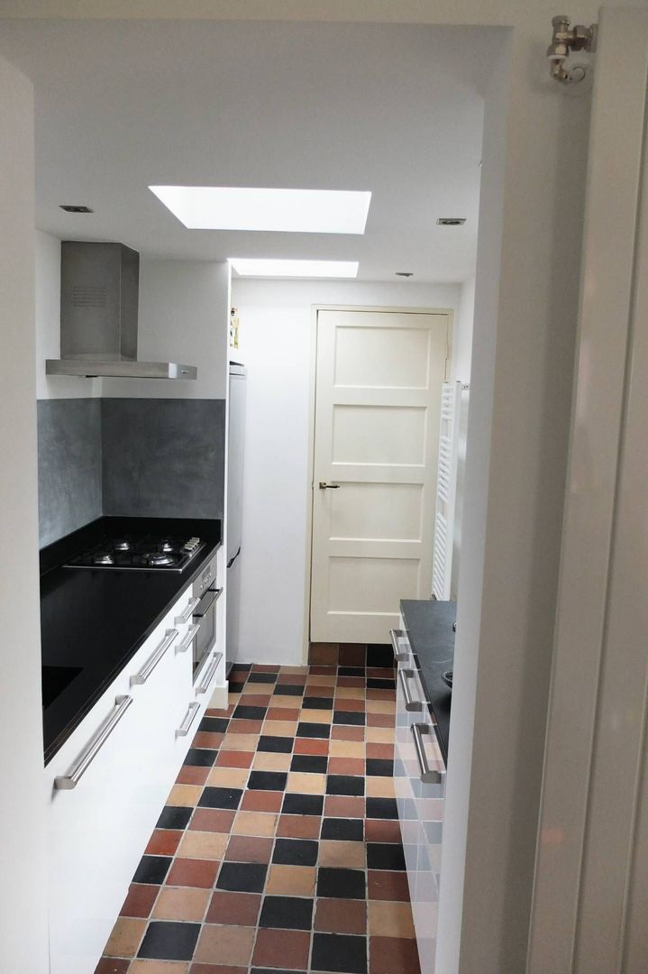 Ground floor: entrance & hall, bright living/dining room with hardwood floor, high ceiling, original panel door, new modern kitchen with built-in appliances, walk-in closet offers lots of storage space, and a toilet. Patio doors and kitchen door lead to a 11m deep sunny garden on the southwest. The garden has sun all day until sunset. There is additional storage space in the garden.