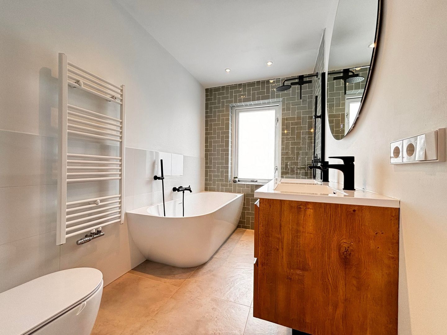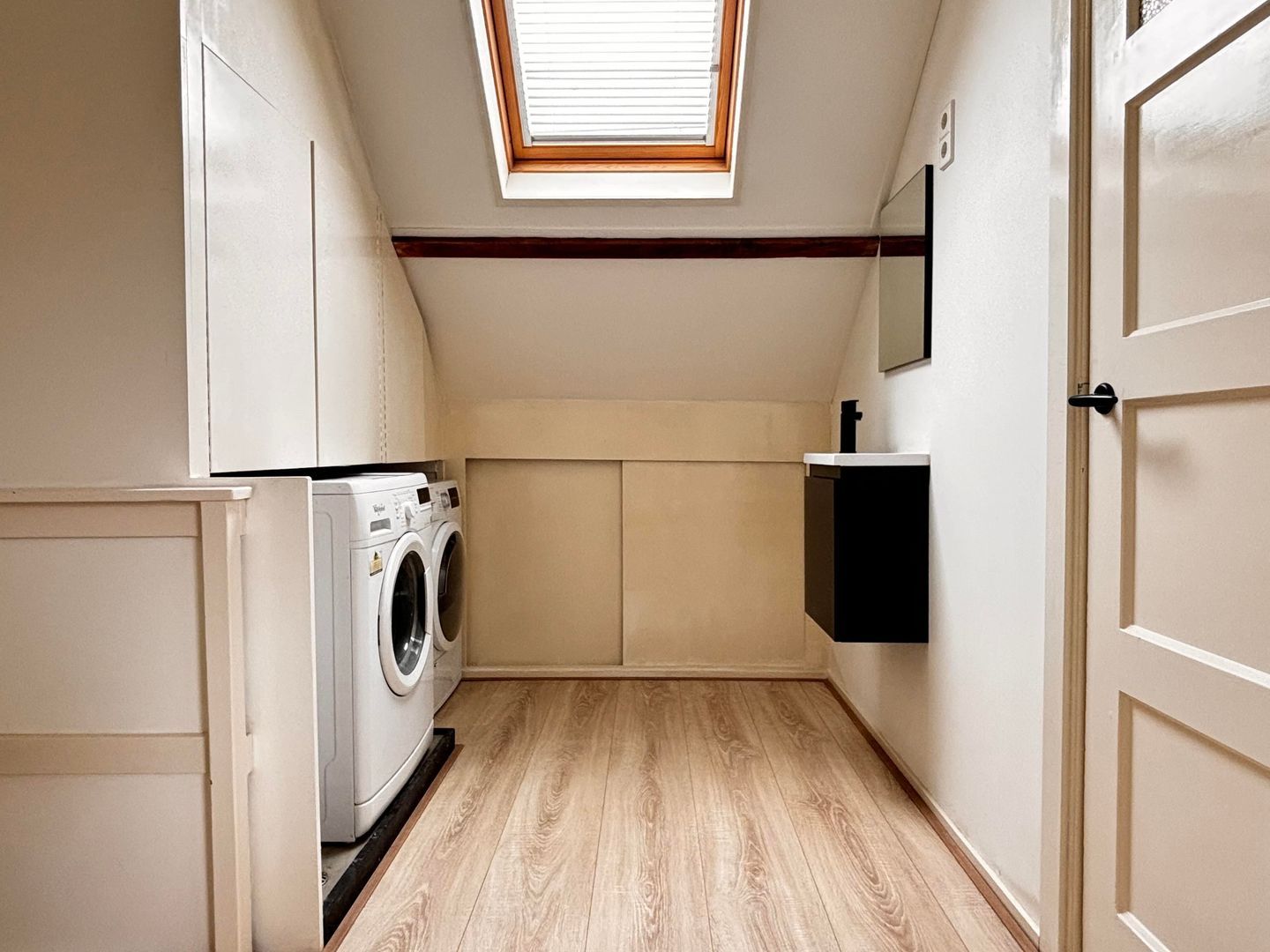 In the attic you first reach the spacious landing. There is enough space to do the laundry and the central heating boiler is located here as well. There is sufficient storage space in the ‘’knee bulkheads’’. The two bedrooms are of a good size and both have a dormer window.