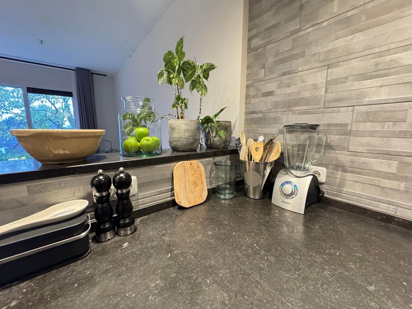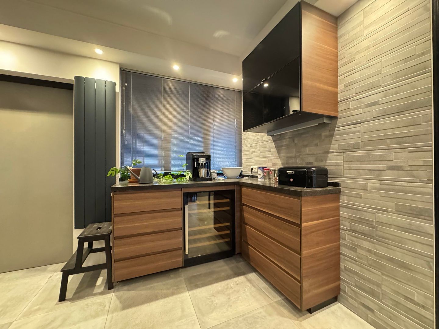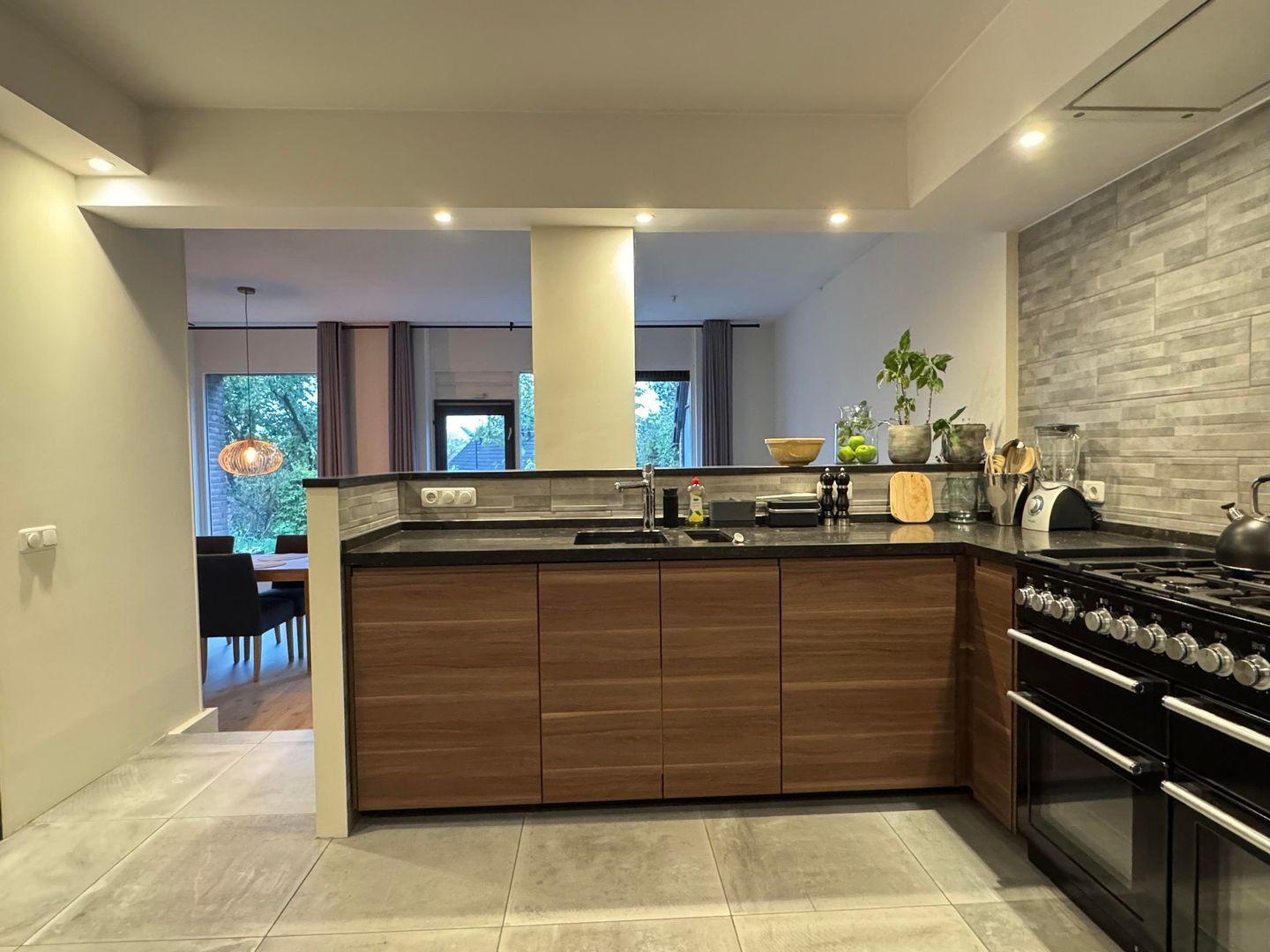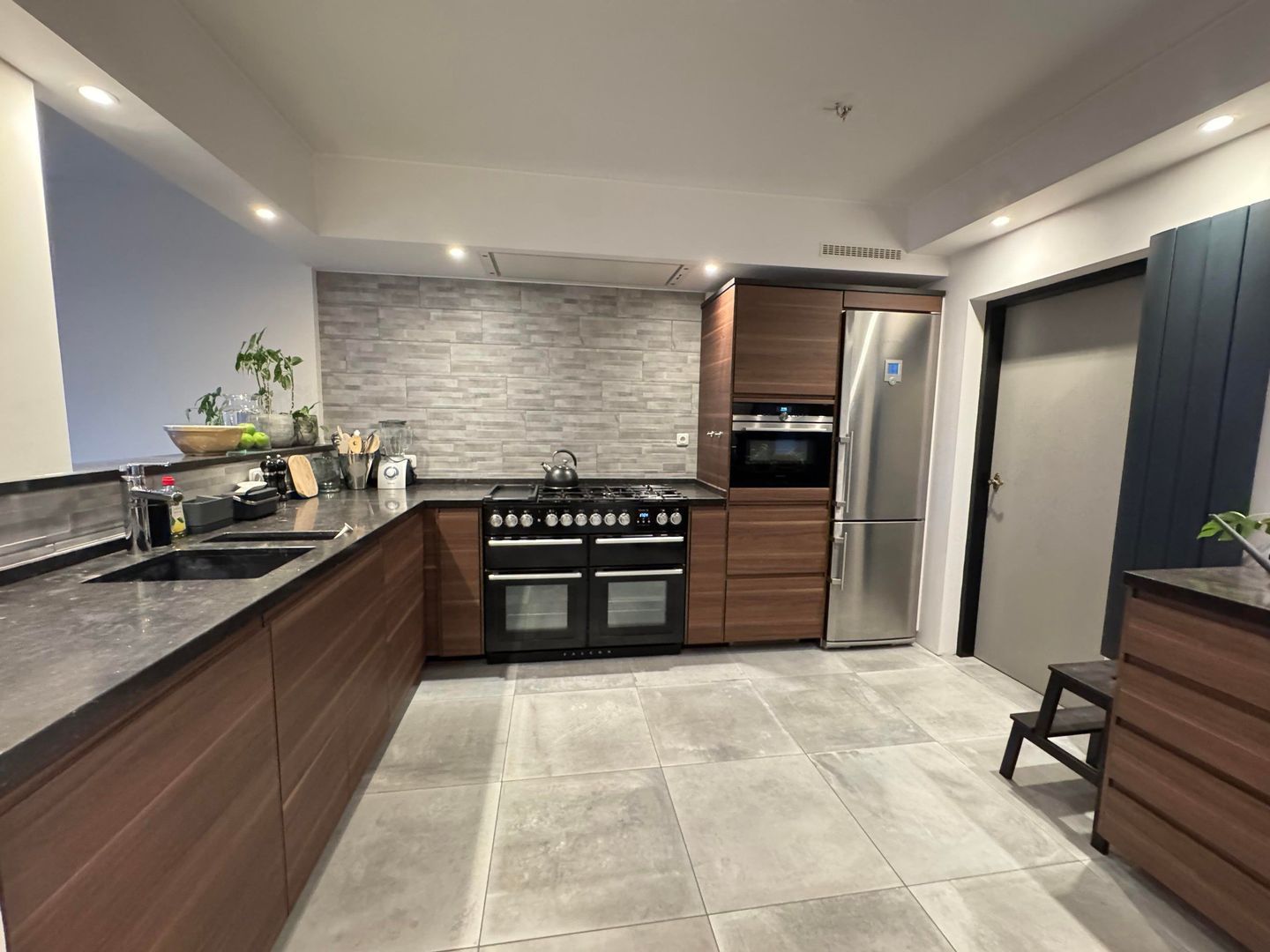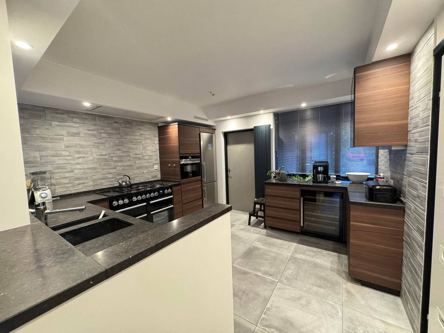 BG: entree, hal, separaat toilet, split level woonkamer / eetkamer met toegang tot de achtertuin en ruime luxe keuken voorzien van alle apparatuur; daarnaast nog een praktische bijkeuken / laundry.