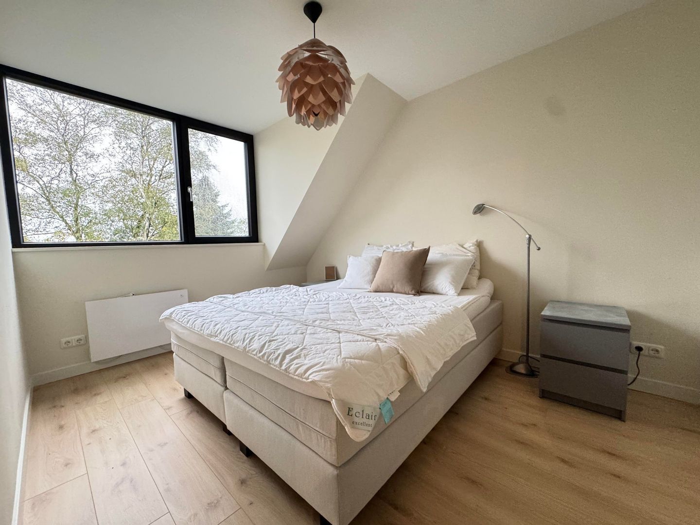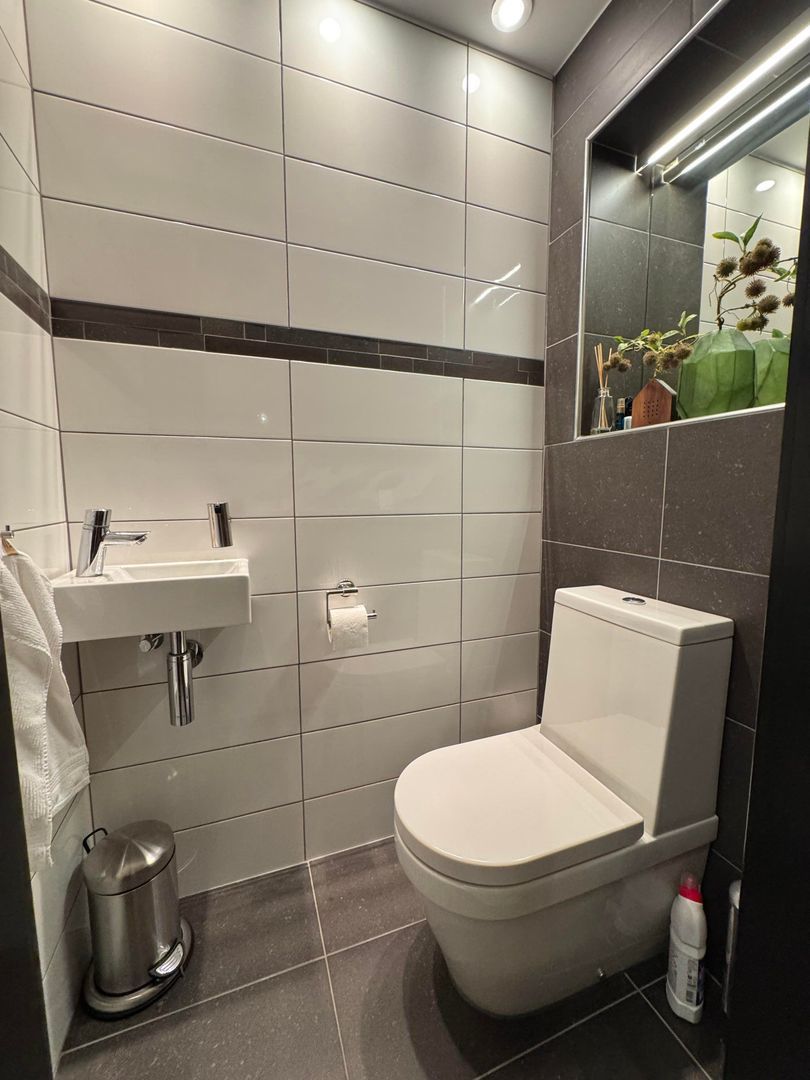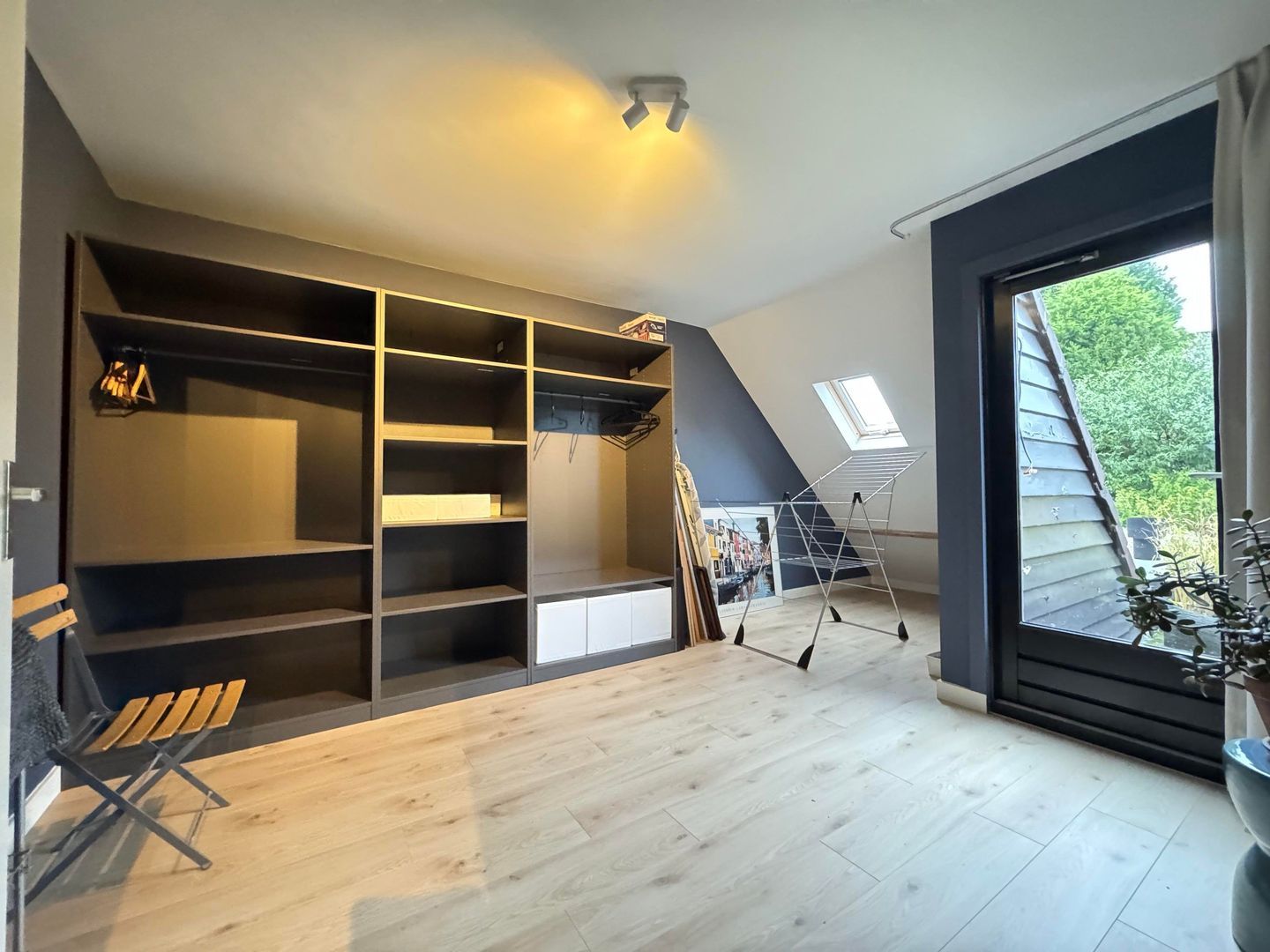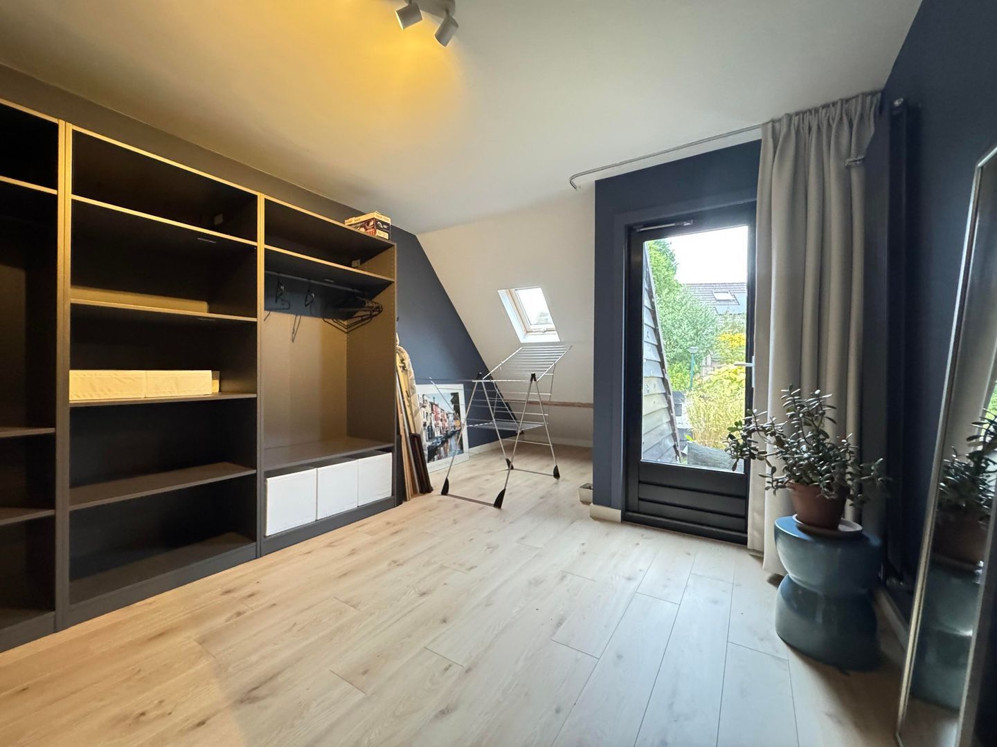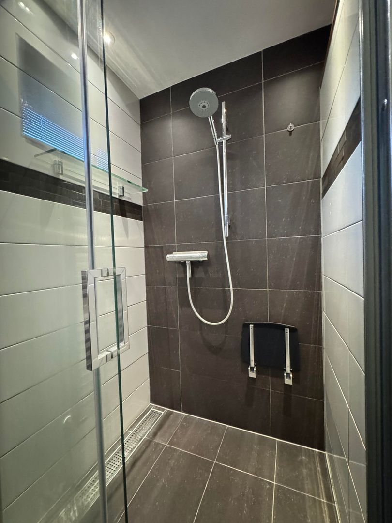 1e etage: master bedroom, ruime kastenkamer / multifunctionele ruimte met klein balkonnetje, study / working from home ruimte en luxe badkamer met ruime inloopdouche, wastafel en 2e toilet.