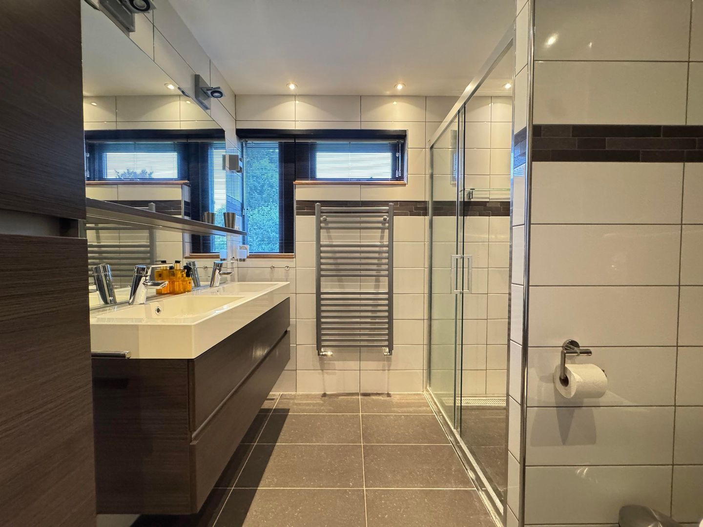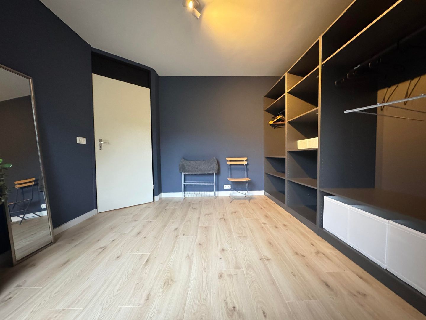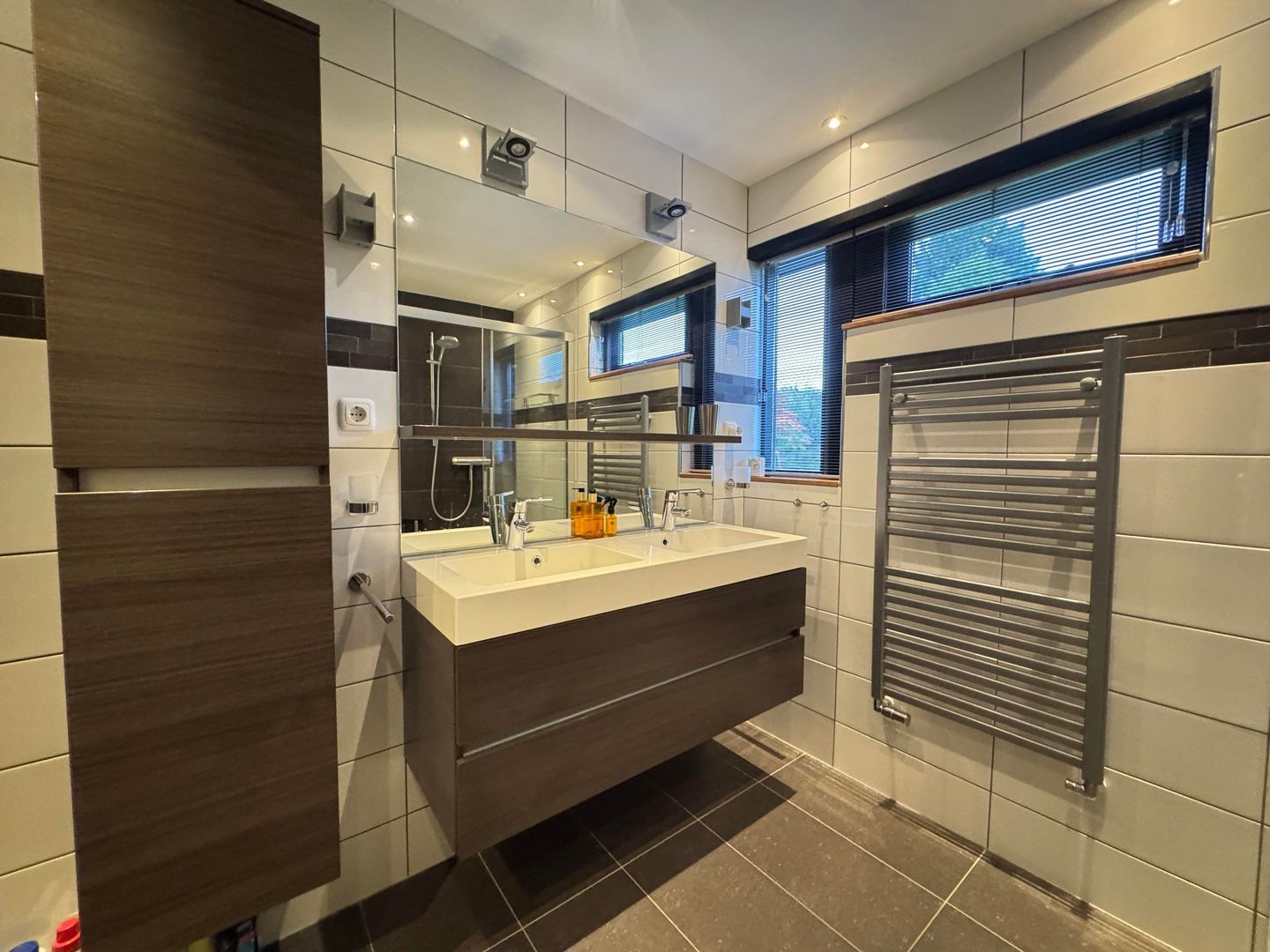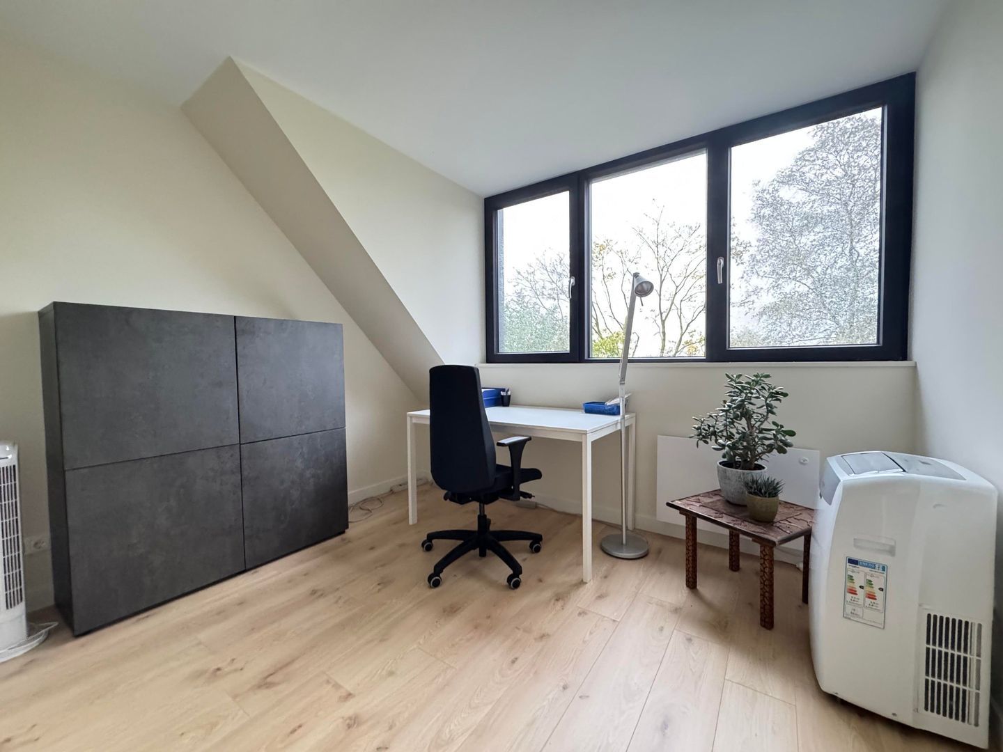 1e etage: master bedroom, ruime kastenkamer / multifunctionele ruimte met klein balkonnetje, study / working from home ruimte en luxe badkamer met ruime inloopdouche, wastafel en 2e toilet.