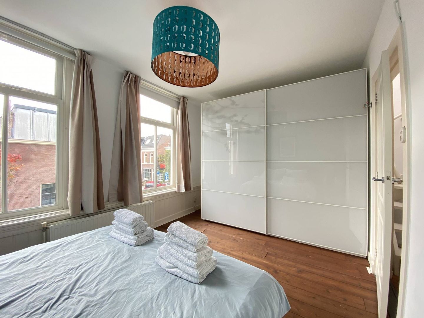 Op de tweede verdieping twee slaapkamers met elk hun eigen kledingkasten.