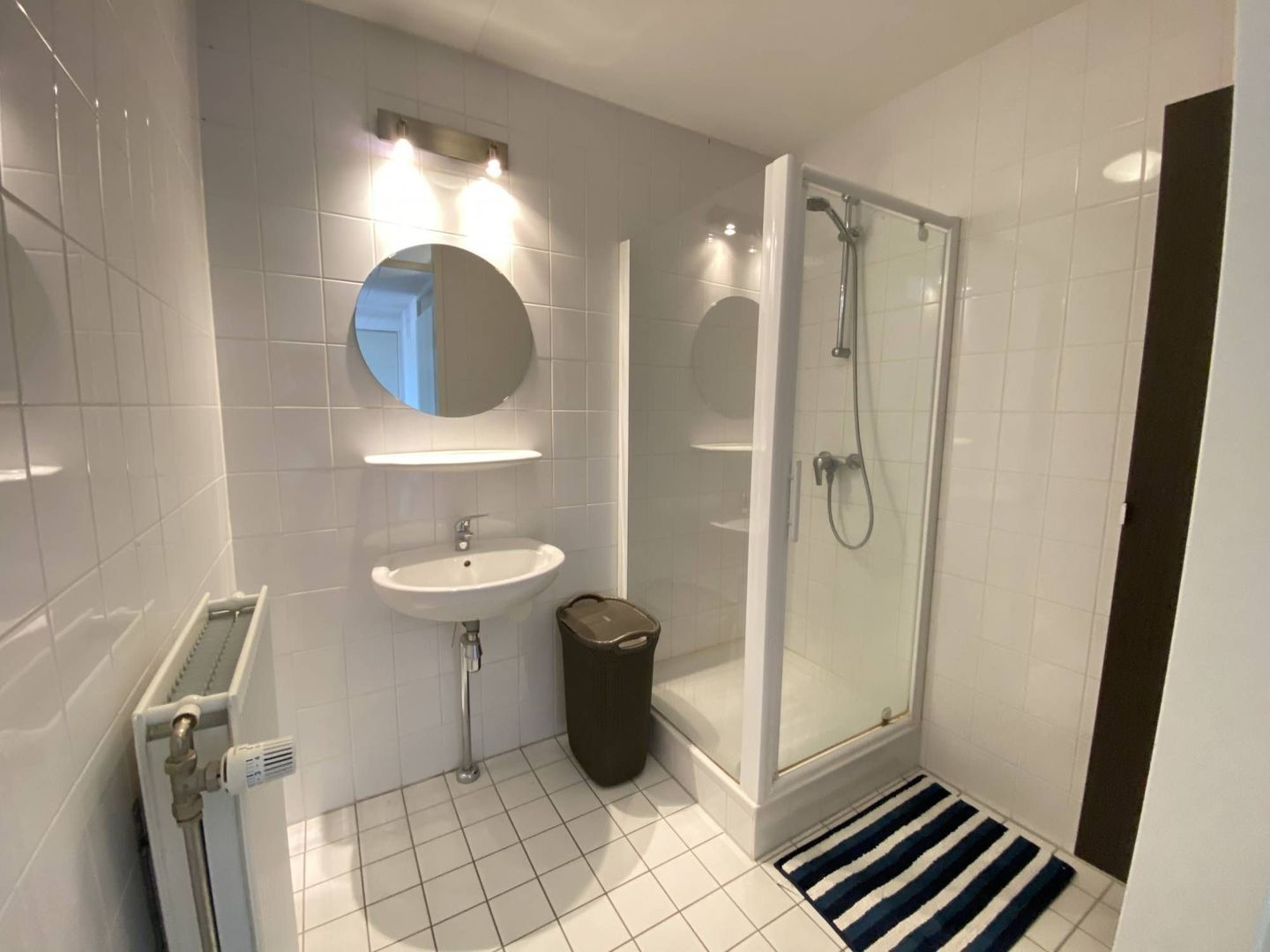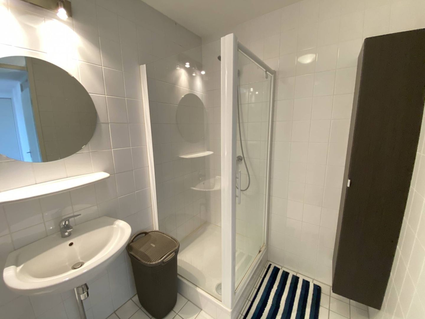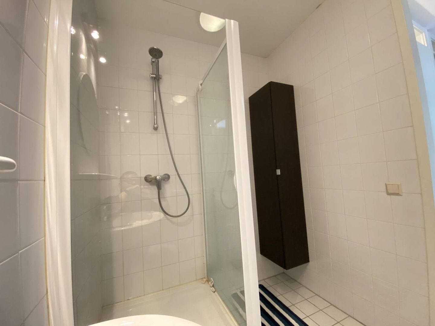 Separate toiletruimte en een moderne badkamer met douche en wastafel.