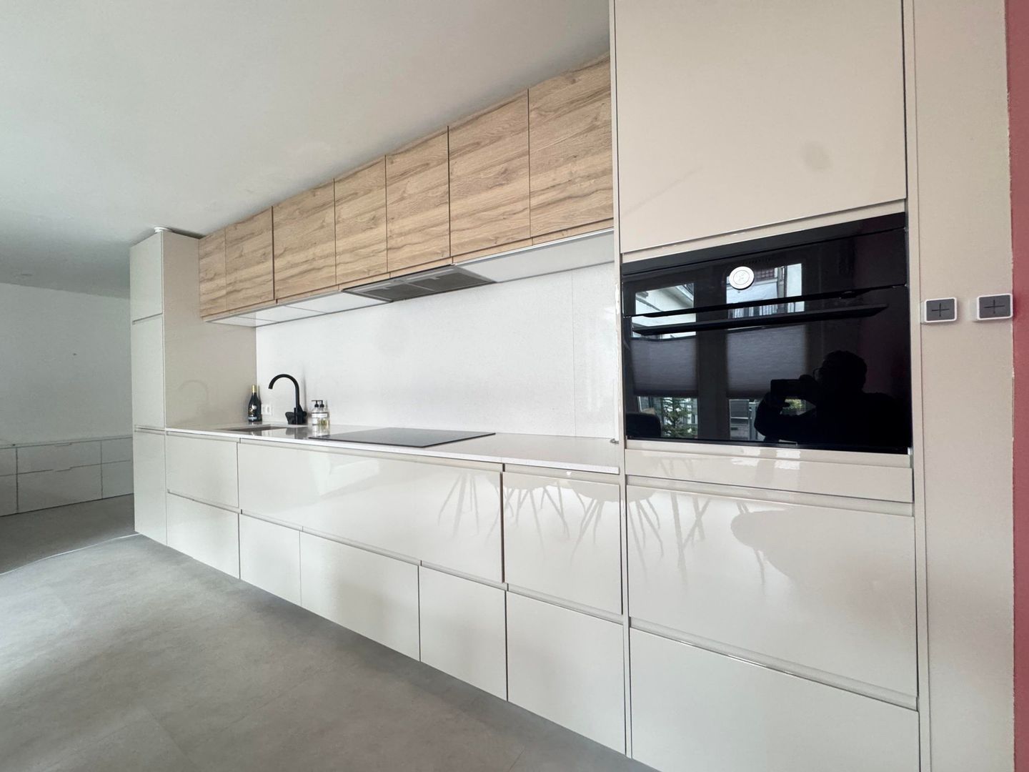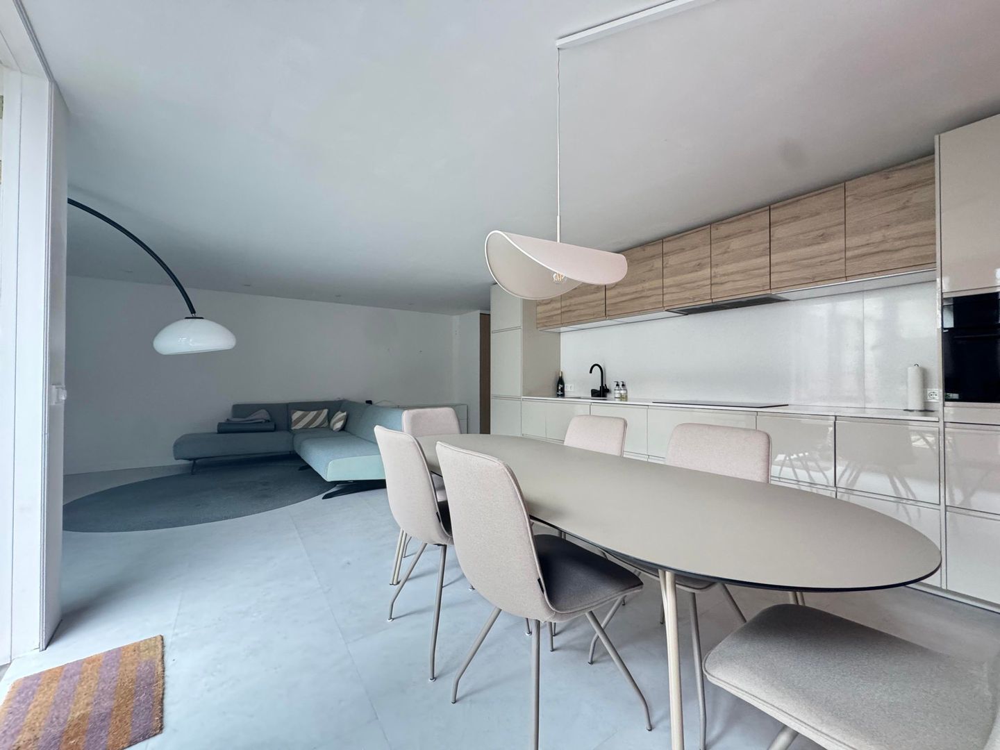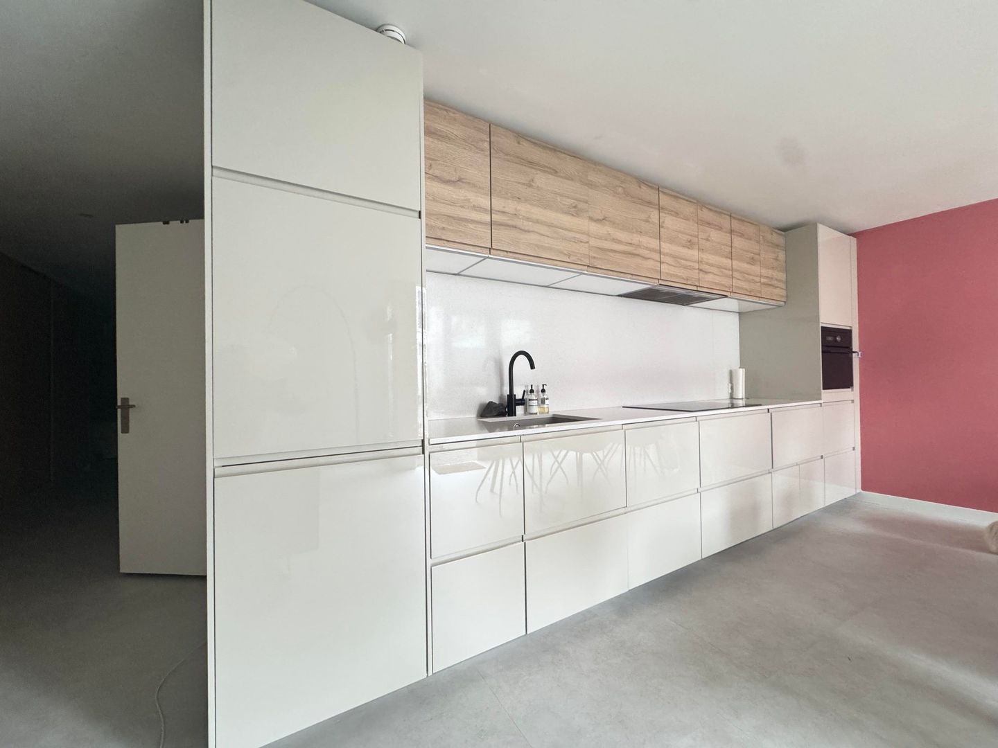 Entree, eetkamer, luxe open keuken met alle apparatuur, woonkamer / zithoek, passage met veel kastruimte en open slaapkamer, luxe badkamer met ruime douche, toilet en wastafel met meubel. Passage met kastruimte naar opslagruimte / laundry met wasmachine en droger, 2e ruime slaapkamer met kastruimte.