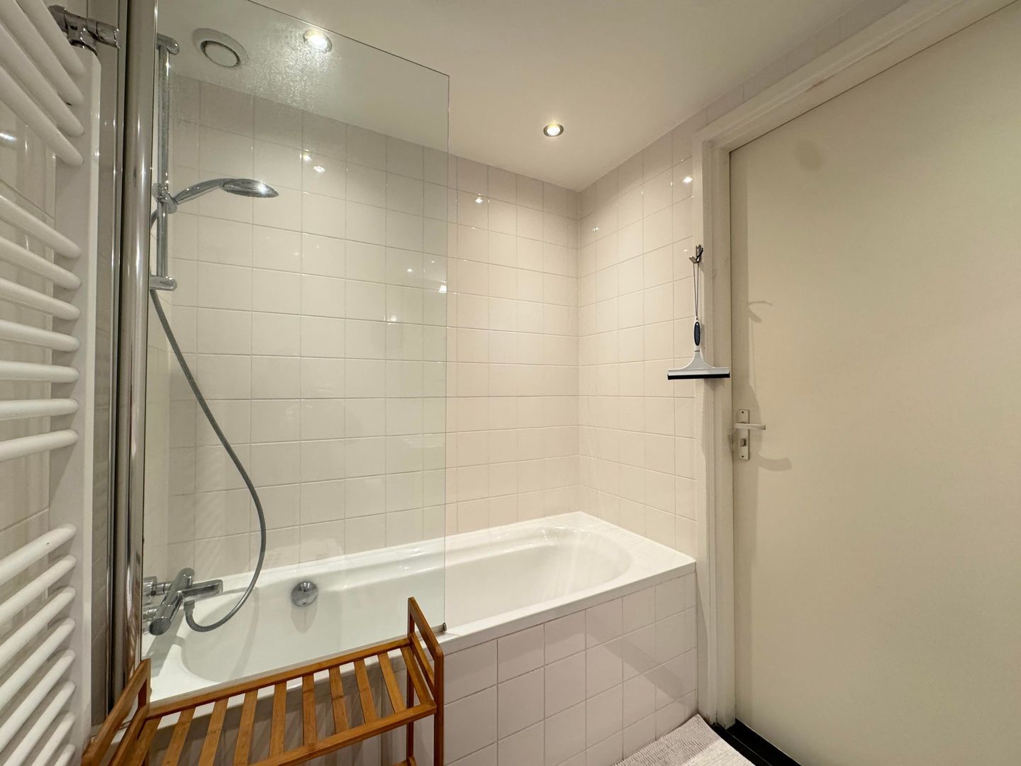 Twee slaapkamers, beide met een dubbel bed. Badkamer met douche in bad, wastafel en toilet.