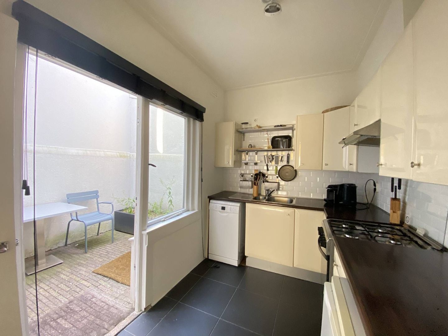 Entree/hal met toiletruimte. Doorgang naar de lichte woon-eetkamer met hoge plafonds en een houtenvloer. Aparte keuken met diverse apparatuur. Er is vanuit de keuken toegang tot de patio.