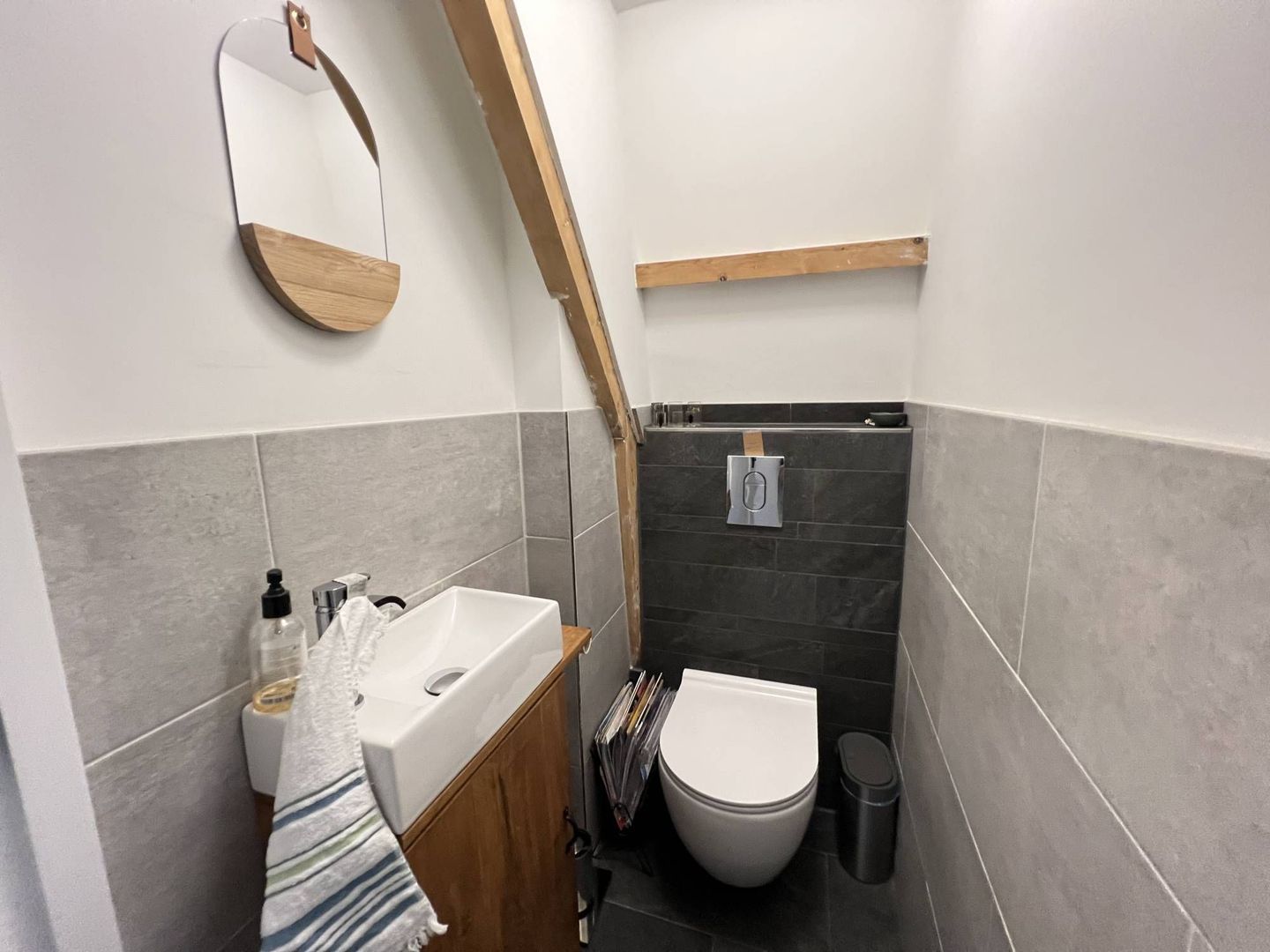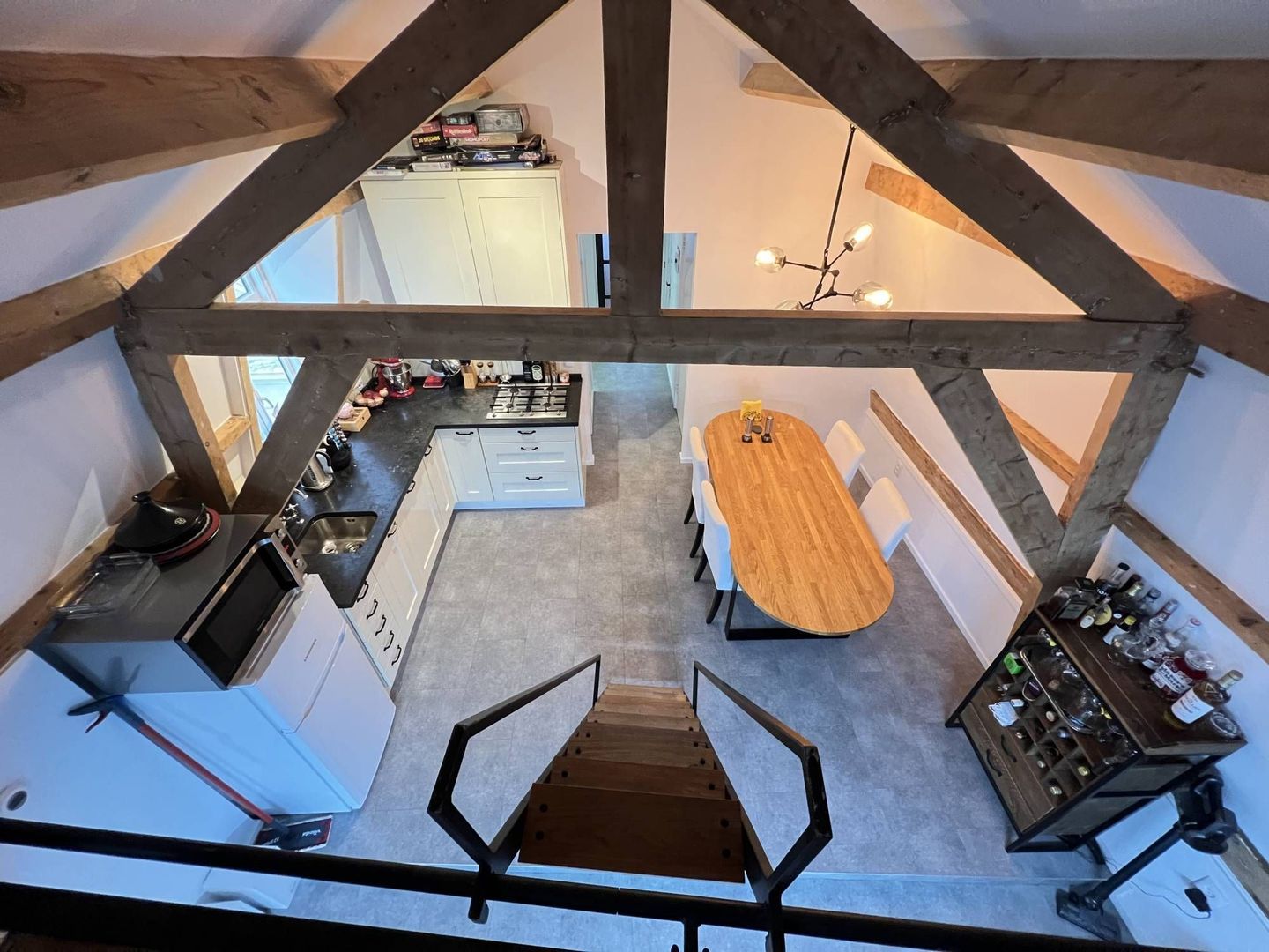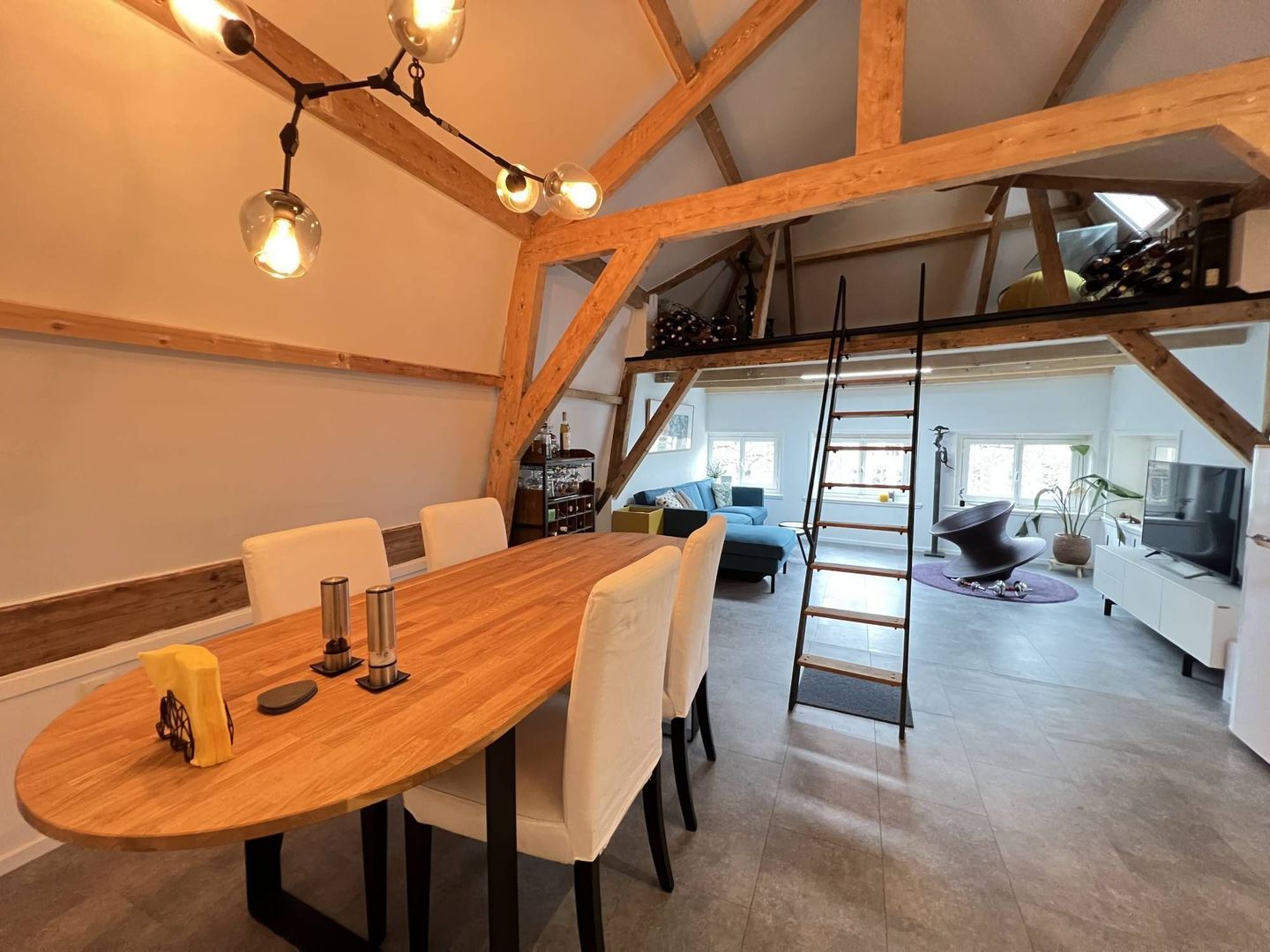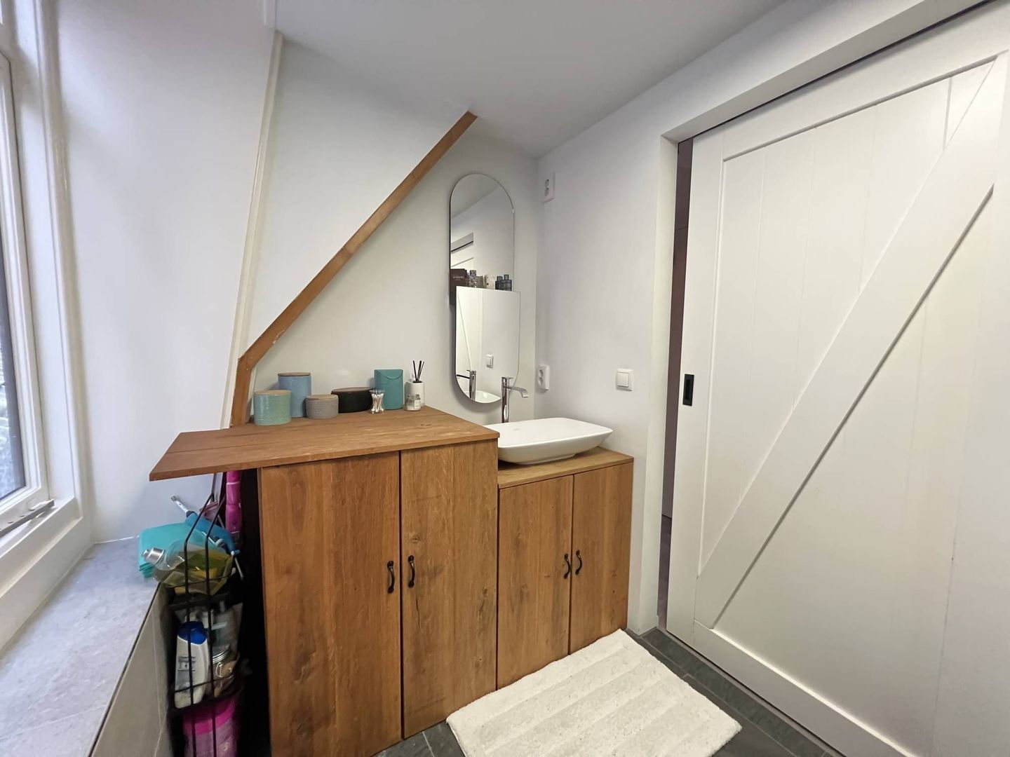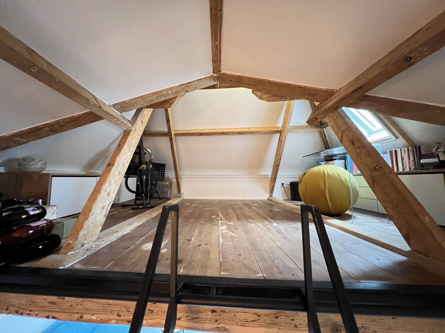 Hal, overloop, seperaat toilet, woon/eetkamer, moderne open keuken, slaapkamer, moderne badkamer en een opbergvide.