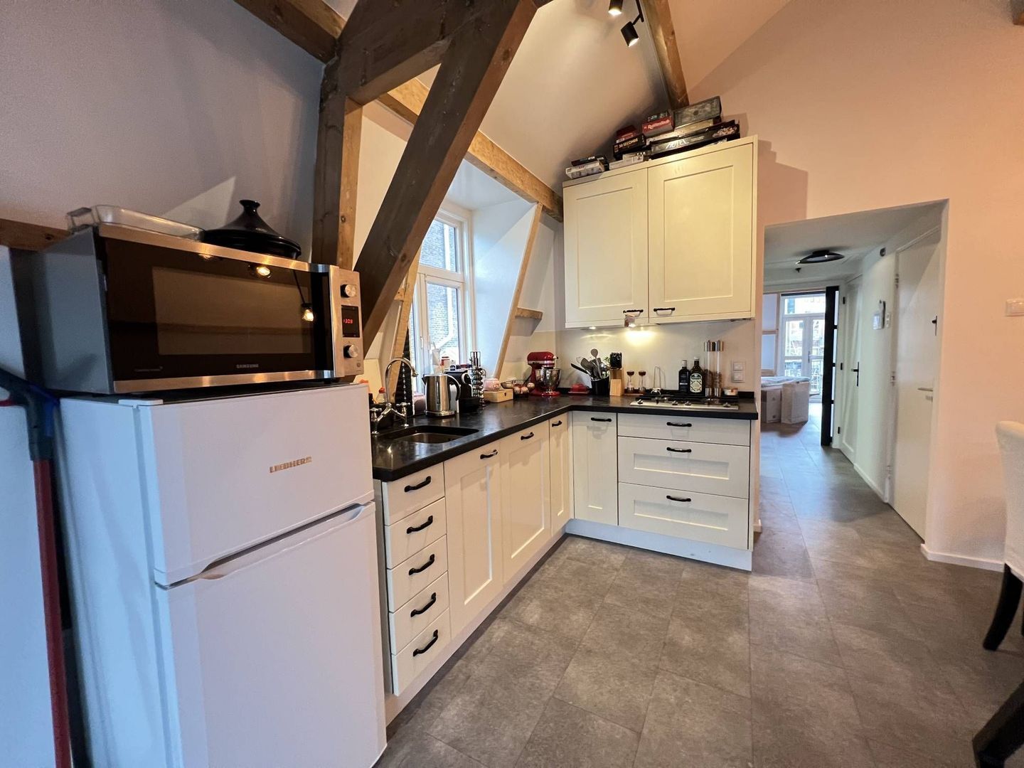 Deze woning is volledig gerenoveerd met behoud van de oude details. Het appartement heeft een lichte ruime woonkamer, een moderne keuken voorzien van alle apparatuur en een moderne badkamer met douche.