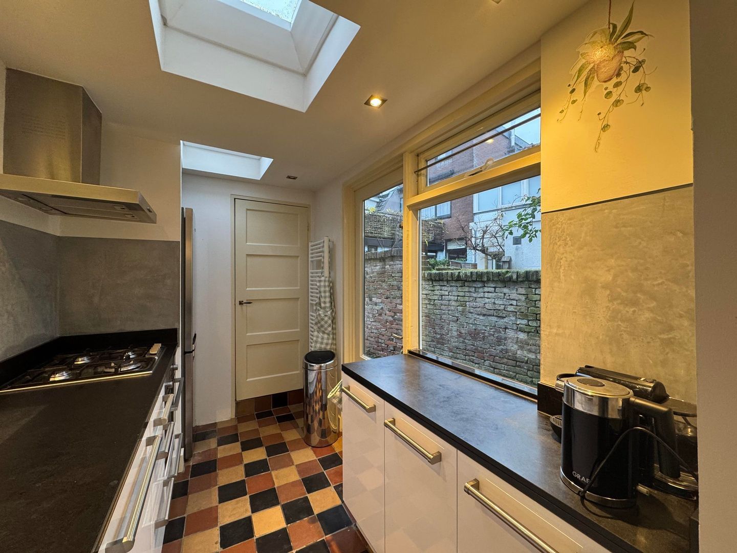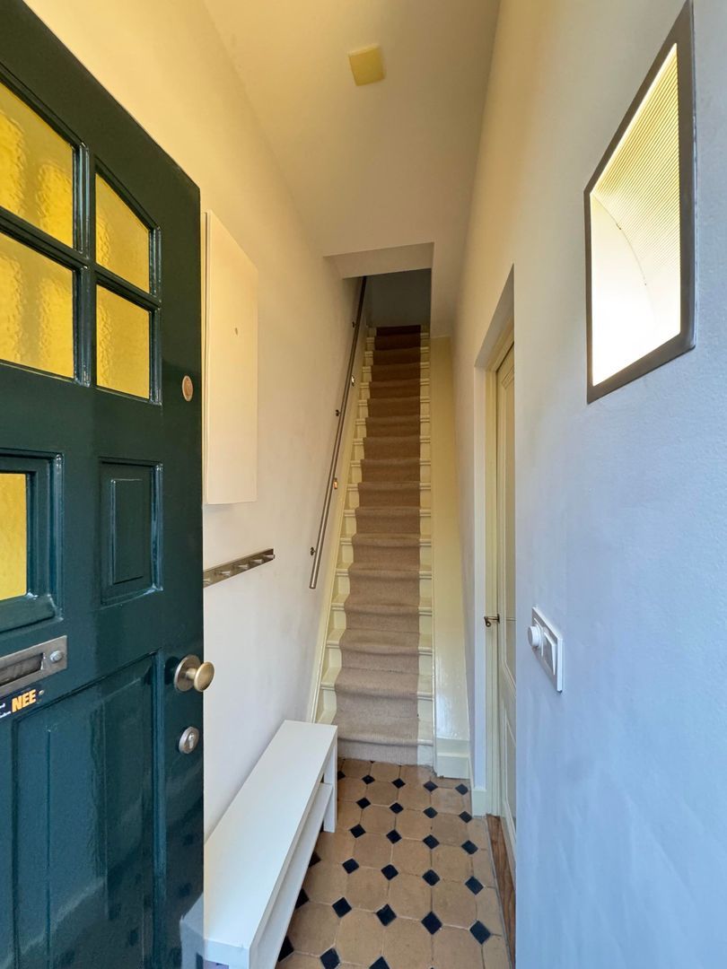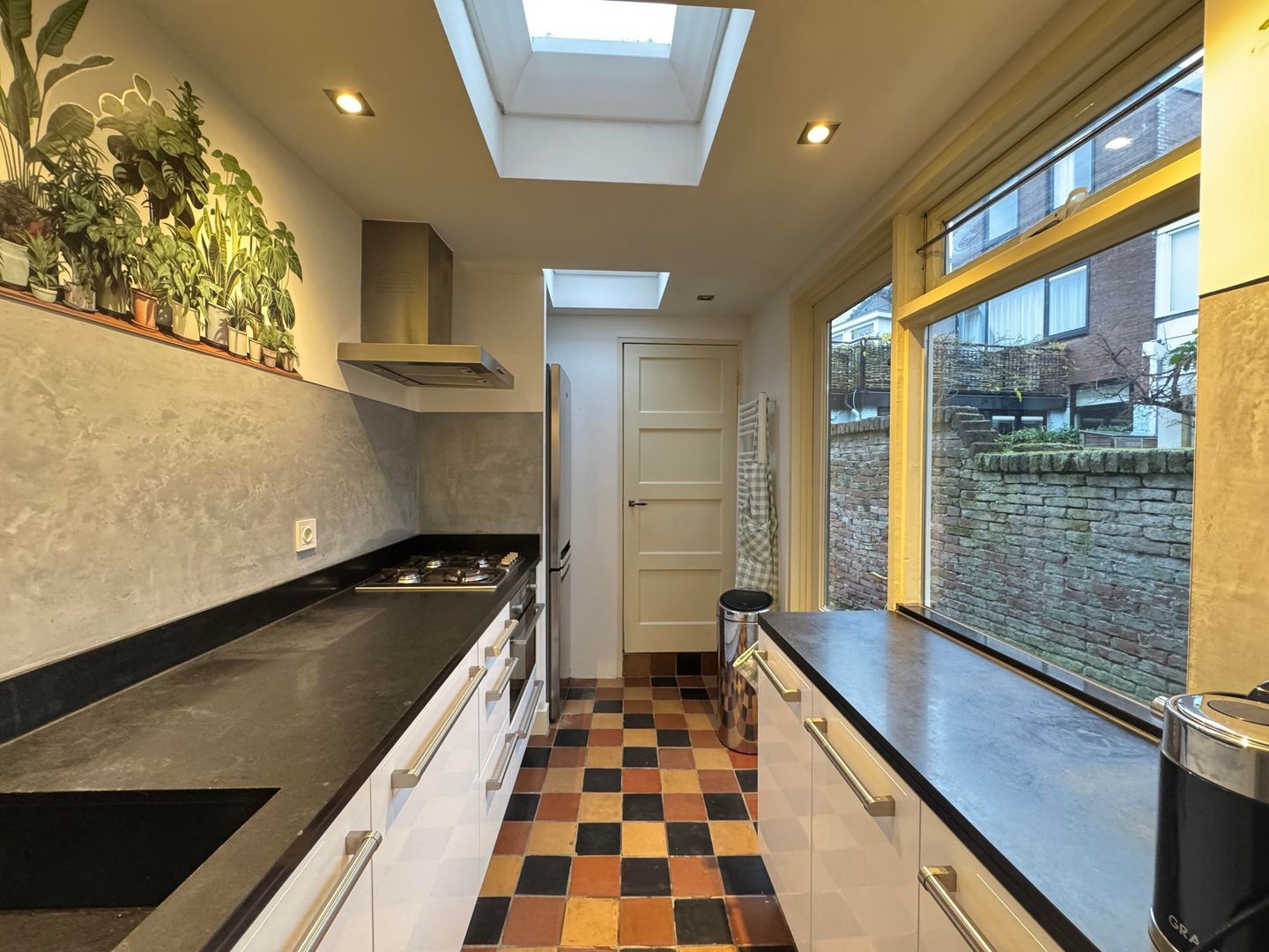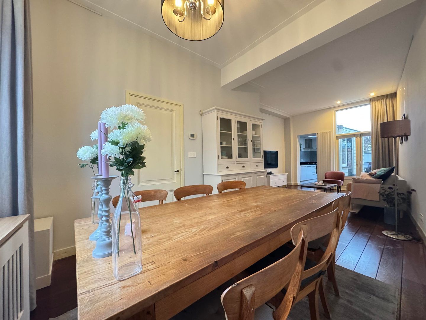 Begane grond: entree & hal, lichte woon / eetkamer met hardhouten vloer, hoog plafond, originele paneeldeur, nieuwe moderne keuken met inbouwapparatuur, inloopkast biedt veel bergruimte en een toilet.