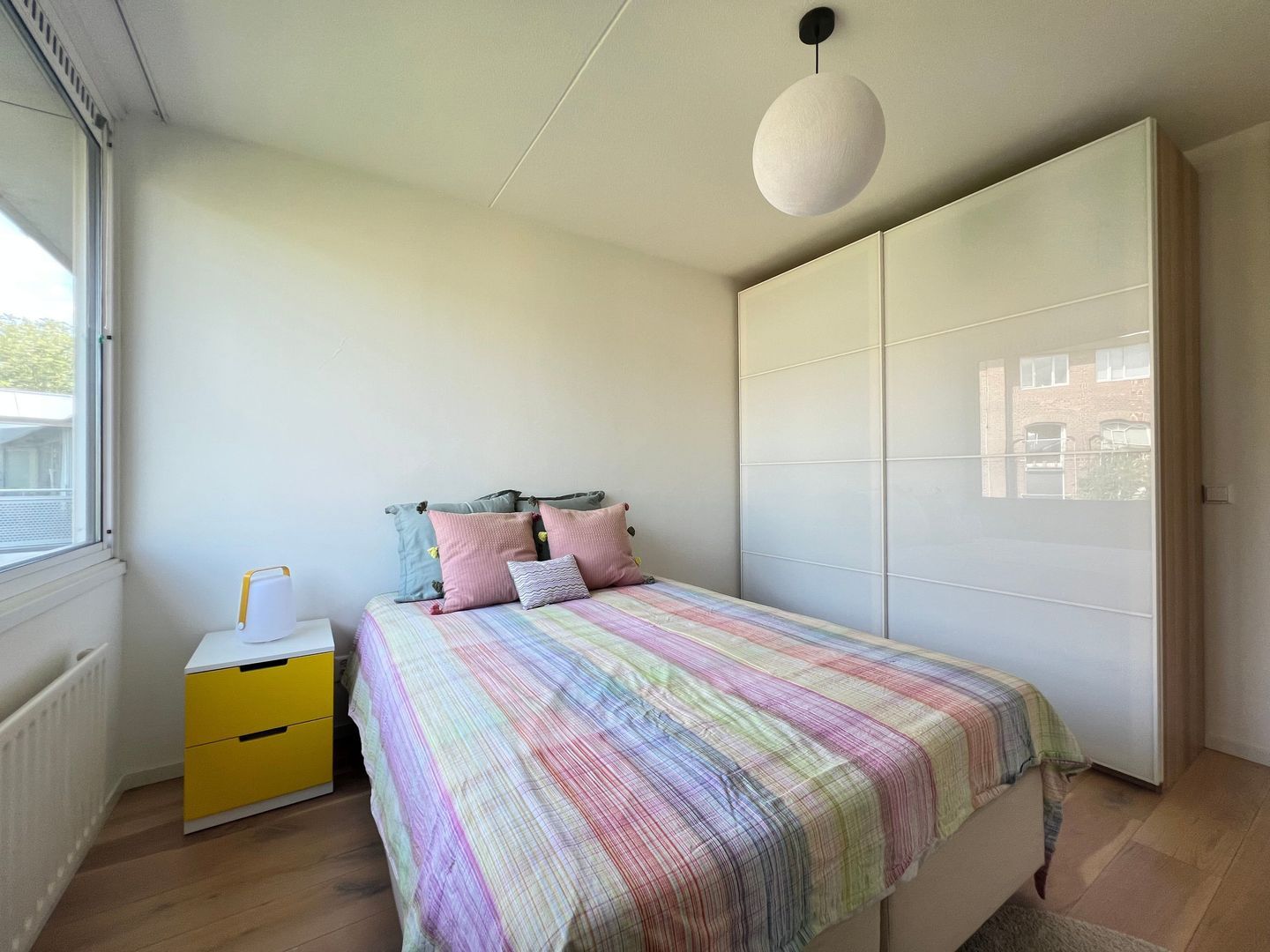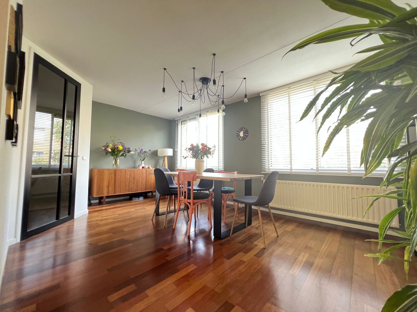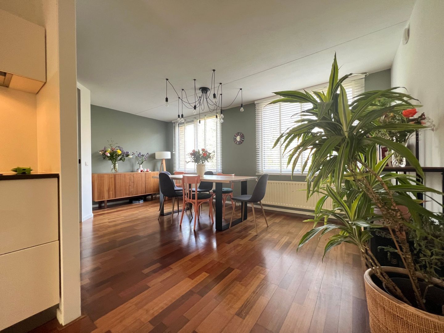 Indeling: de woning is gelegen op de eerste en tweede etage. Eerste etage; entree met toilet. Ruime woonkamer met houten vloer, openslaande deuren naar balkon, moderne keuken voorzien van alle apparatuur. Ruime eetkamer. Op de tweede etage bevinden zich 3 slaapkamers alle voorzien van een houten vloer. Een master bedroom openslaande deuren naar een heerlijk ruim balkon, een middelgrote slaapkamer en een iets kleinere slaapkamer. Moderne badkamer met heerlijke ruime douche, wastafelmeubel en wasmachine aansluiting.