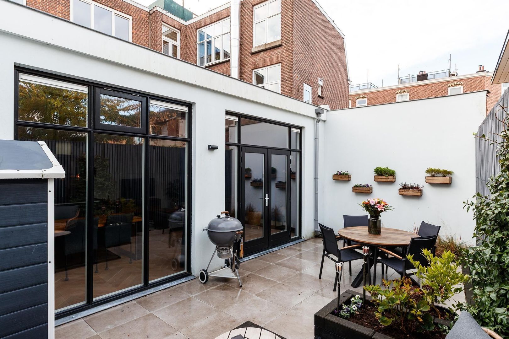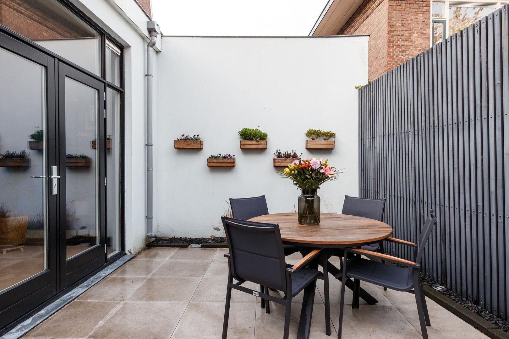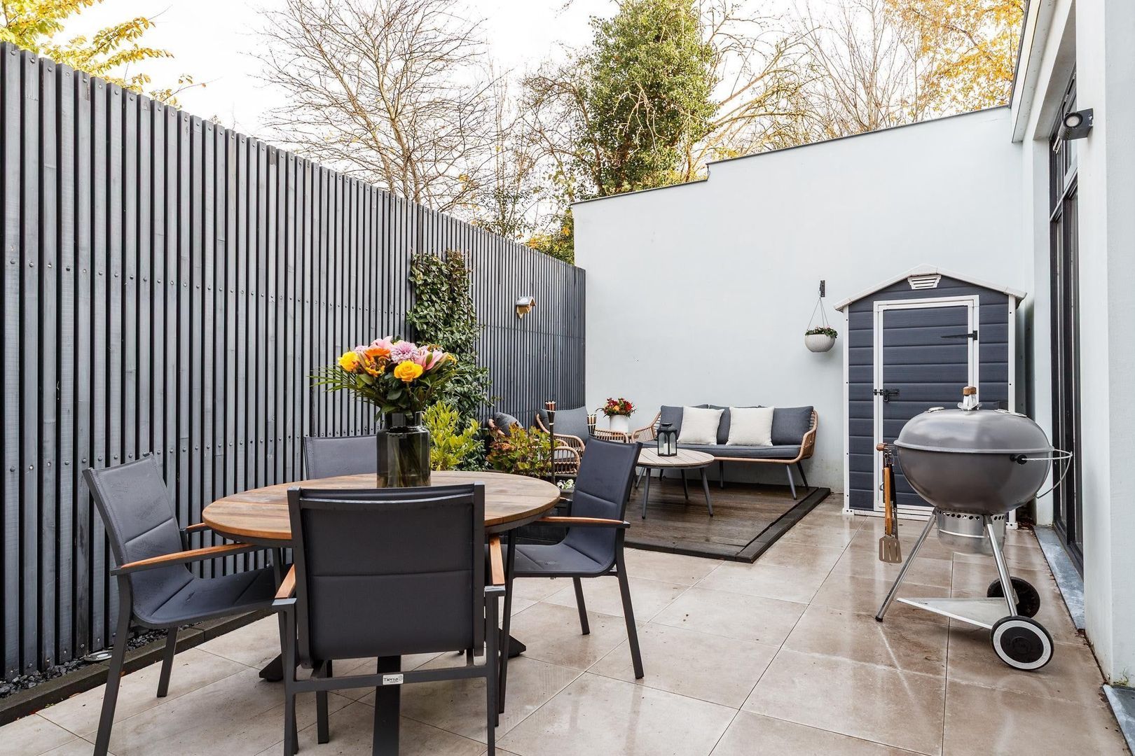 De fraai aangelegde achtertuin biedt volop privacy en is een heerlijke plek om te ontspannen of gezellig buiten te eten.