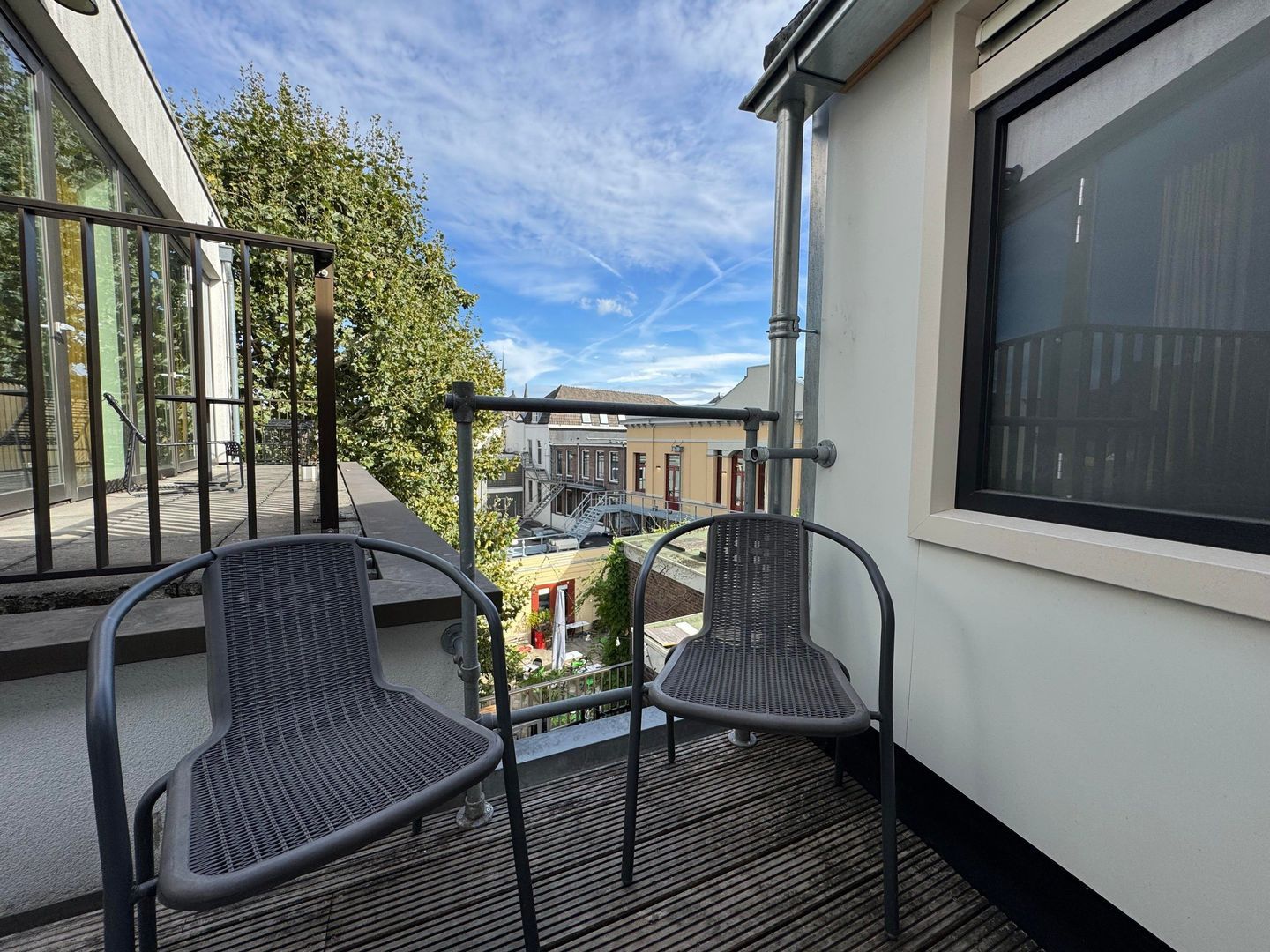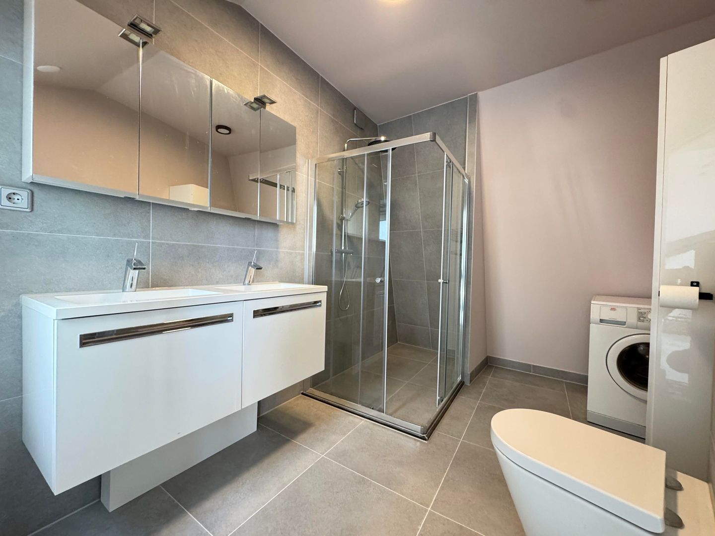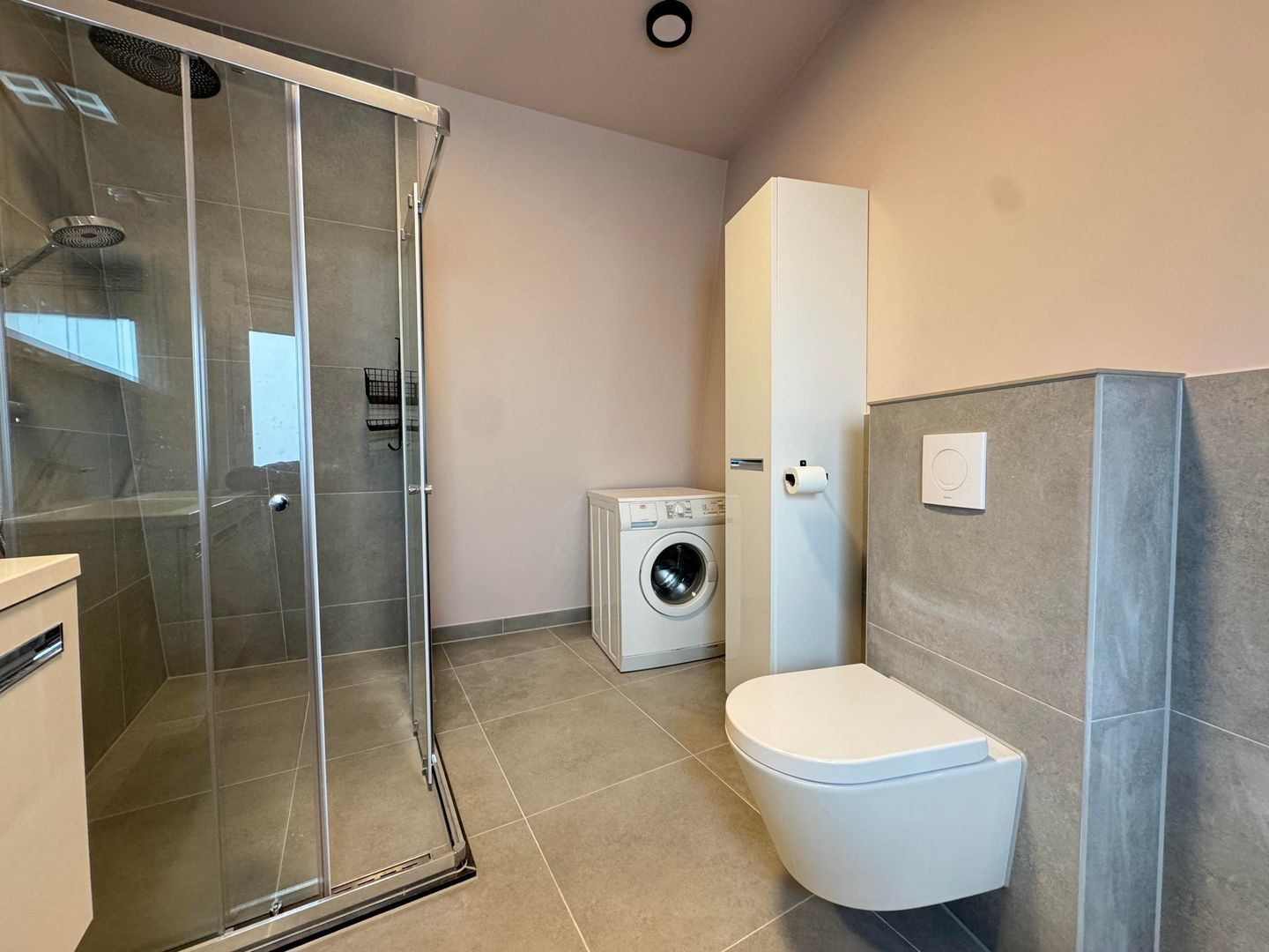 Hal, moderne badkamer met wastafel meubel met dubbele wasbak, spiegelkast, hangend toilet en zeer ruime inloopdouche. Hier is tevens de wasmachine. Slaapkamer 1 met deur naar het eerste balkon. Woonkamer met moderne open keuken van alle gemakken voorzien. Prachtige raampartij dat uitzicht bied over de stad. De hoge plafonds geven een heerlijk ruimtelijk gevoel. Er is vanuit de woonkamer toegang naar het tweede balkon. Trap naar tweede etage met daar de 2e ruime slaapkamer.