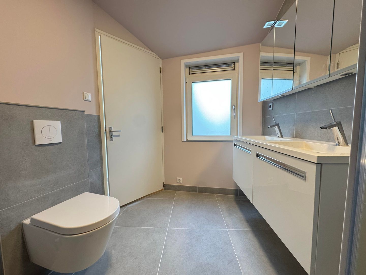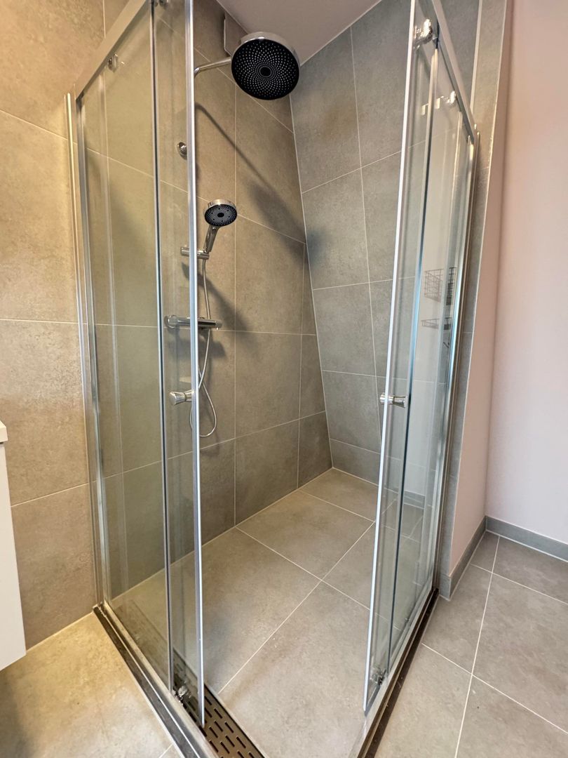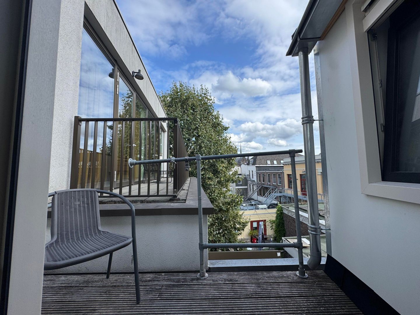 Hal, moderne badkamer met wastafel meubel met dubbele wasbak, spiegelkast, hangend toilet en zeer ruime inloopdouche. Hier is tevens de wasmachine. Slaapkamer 1 met deur naar het eerste balkon. Woonkamer met moderne open keuken van alle gemakken voorzien. Prachtige raampartij dat uitzicht bied over de stad. De hoge plafonds geven een heerlijk ruimtelijk gevoel. Er is vanuit de woonkamer toegang naar het tweede balkon. Trap naar tweede etage met daar de 2e ruime slaapkamer.