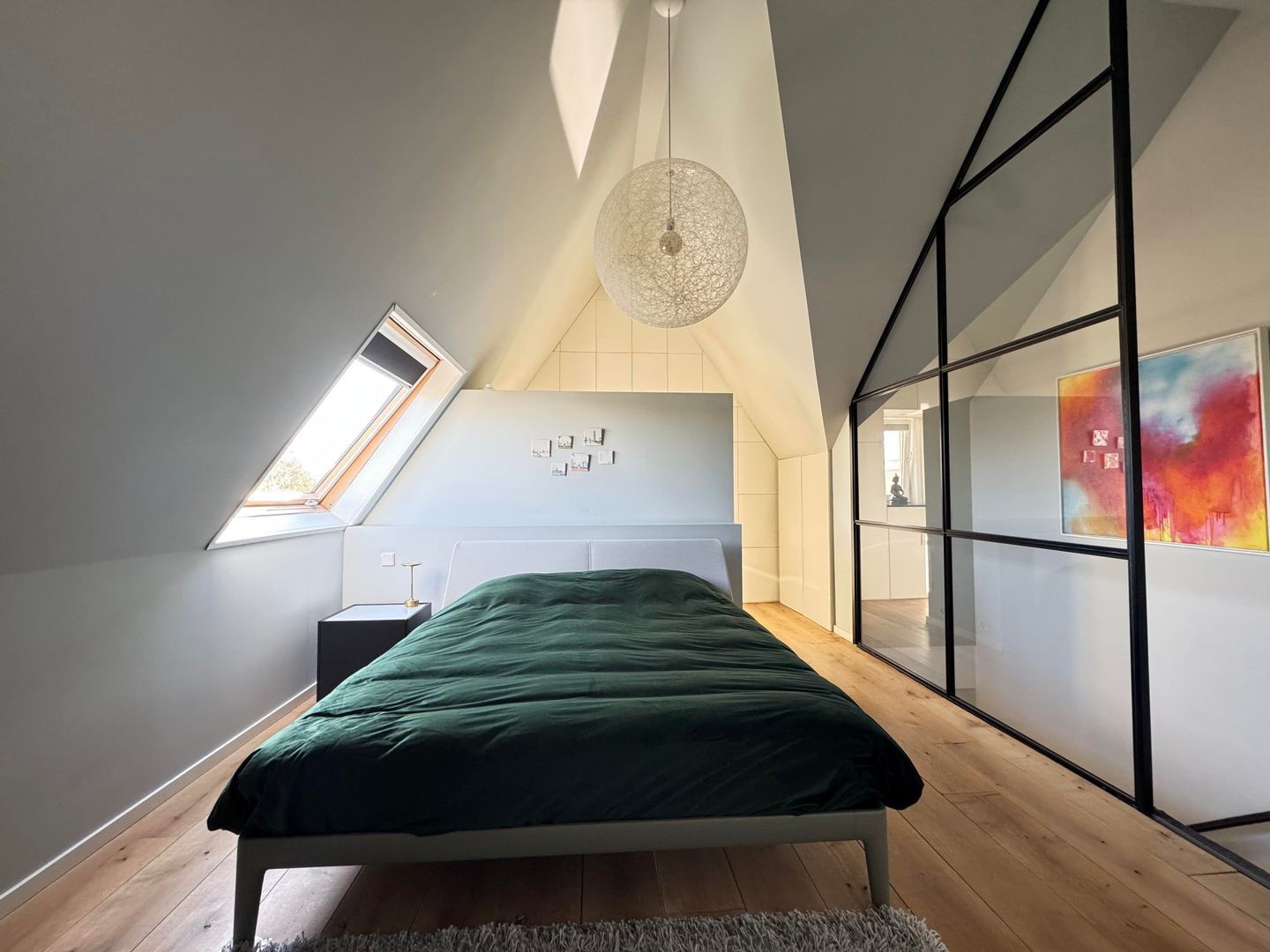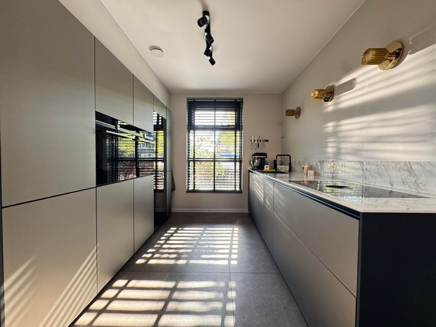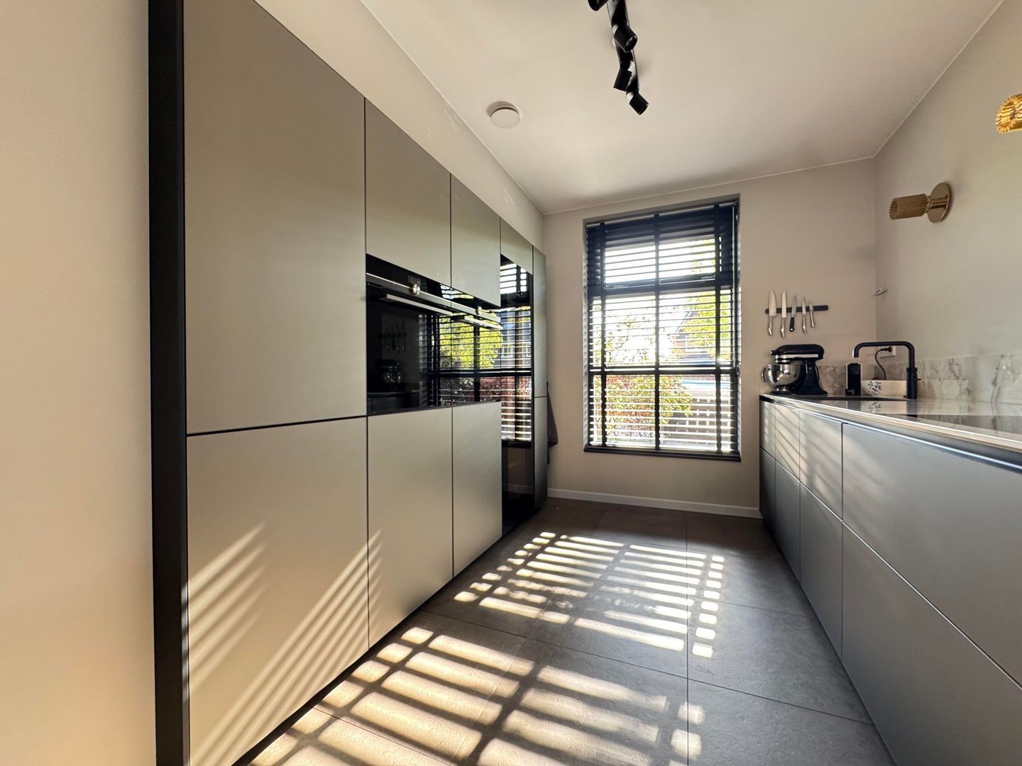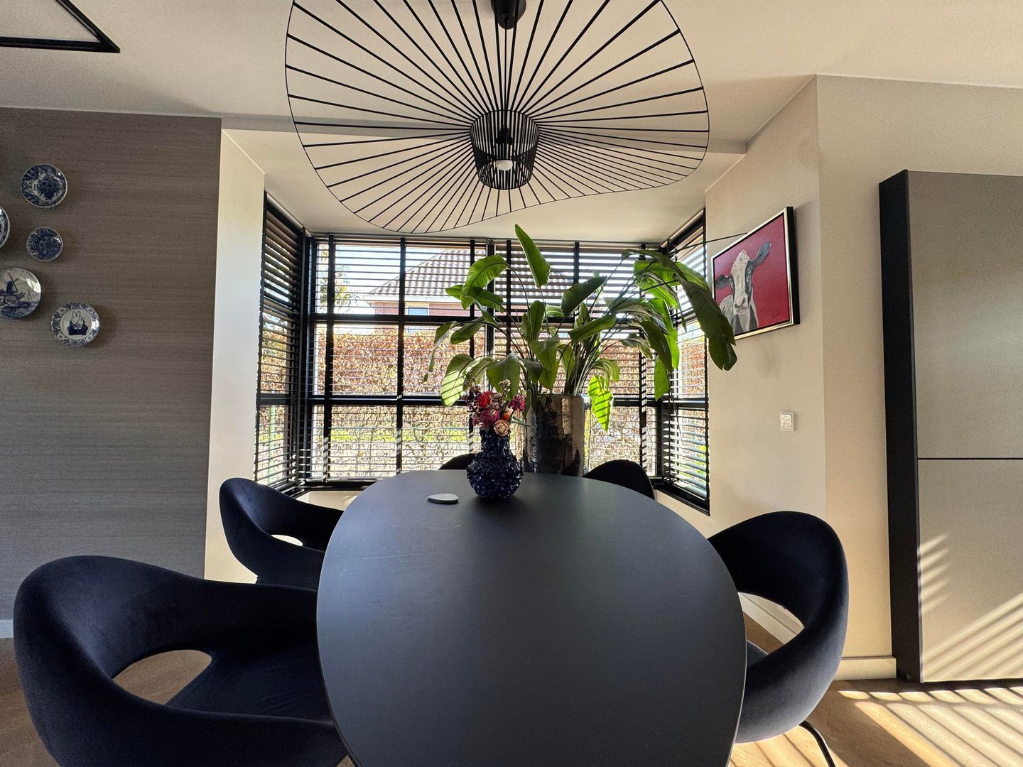Indeling; Hal met modern toilet met wasbak, trap naar de eerste etage en een glazen deur naar de woonkamer. De lichte woonkamer is sfeervol ingericht en voorzien van een prachtige lichte houten vloer met vloerverwarming, een moderne kastenwand en een vrijstaande open haard voor gezellige avonden. De open indeling van deze zeer ruime woonkamer met erker zorgt voor een ruimtelijk gevoel, terwijl de grote glazen vouwwand naar de tuin voor veel daglicht zorgt. De moderne halfopen keuken is uitgerust met alle benodigde apparatuur inclusief een wijnklimaatkast. De woning is harmonisch vormgegeven en voorzien van een professioneel lichtplan door een binnenhuisarchitect.