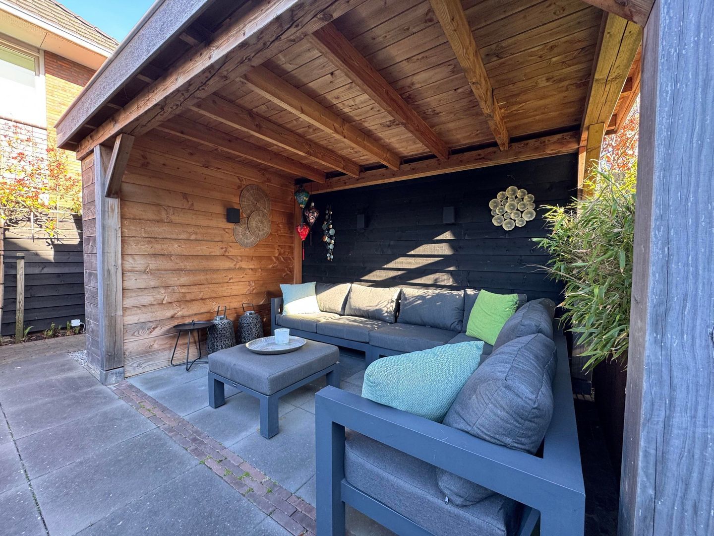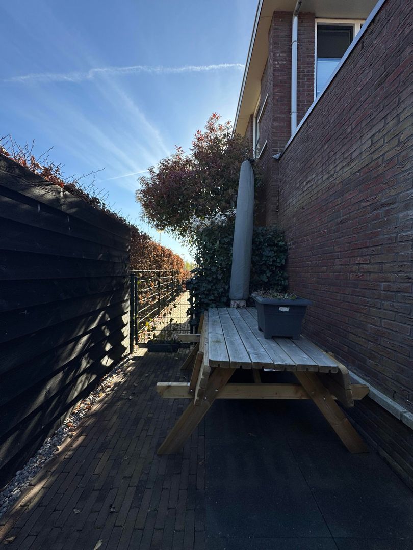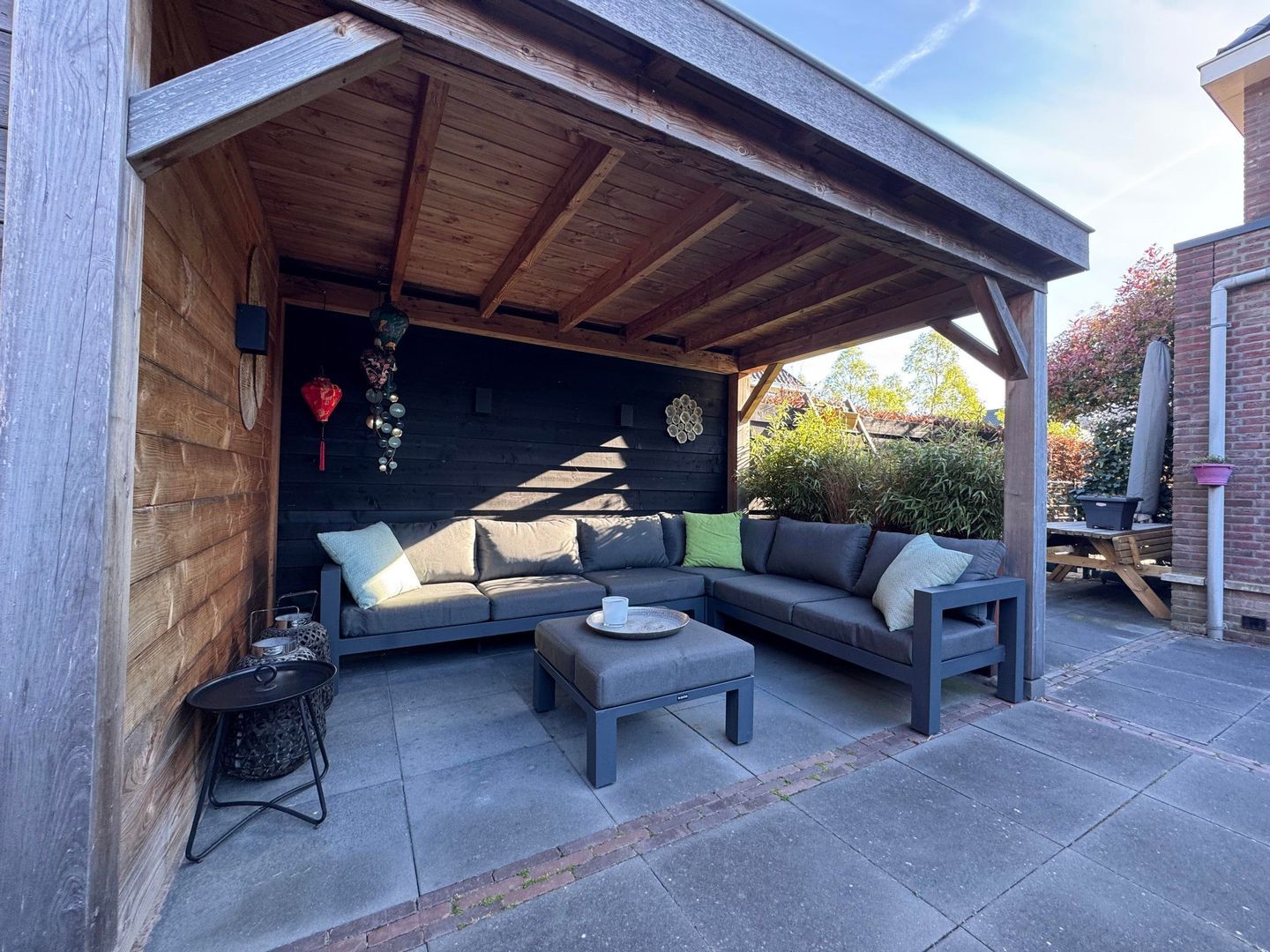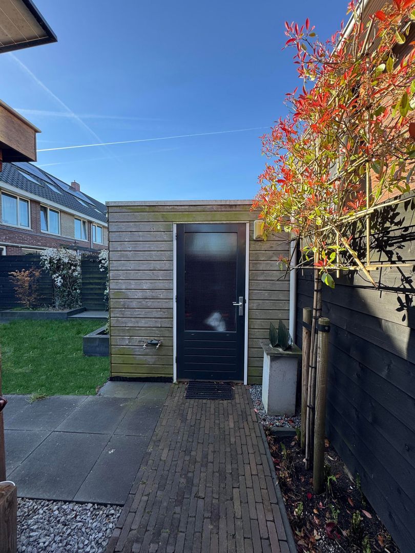 Buiten; De besloten achtertuin met overkapping, inclusief zonnepanelen, is een heerlijke plek om te ontspannen en biedt volop privacy. Ideaal om het hele jaar door van buiten te genieten. De tuin is gelegen op het zuid-westen waardoor er veel zon is. Er is een schuur die, door de achteringang, gebruikt kan worden voor fietsen en overige opslag.