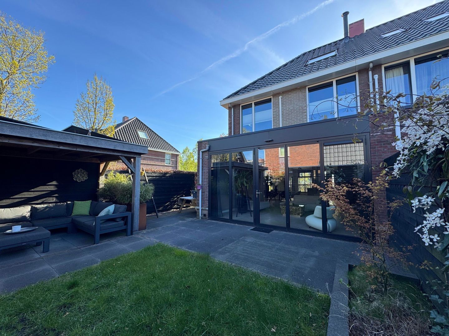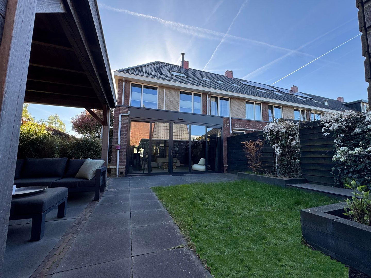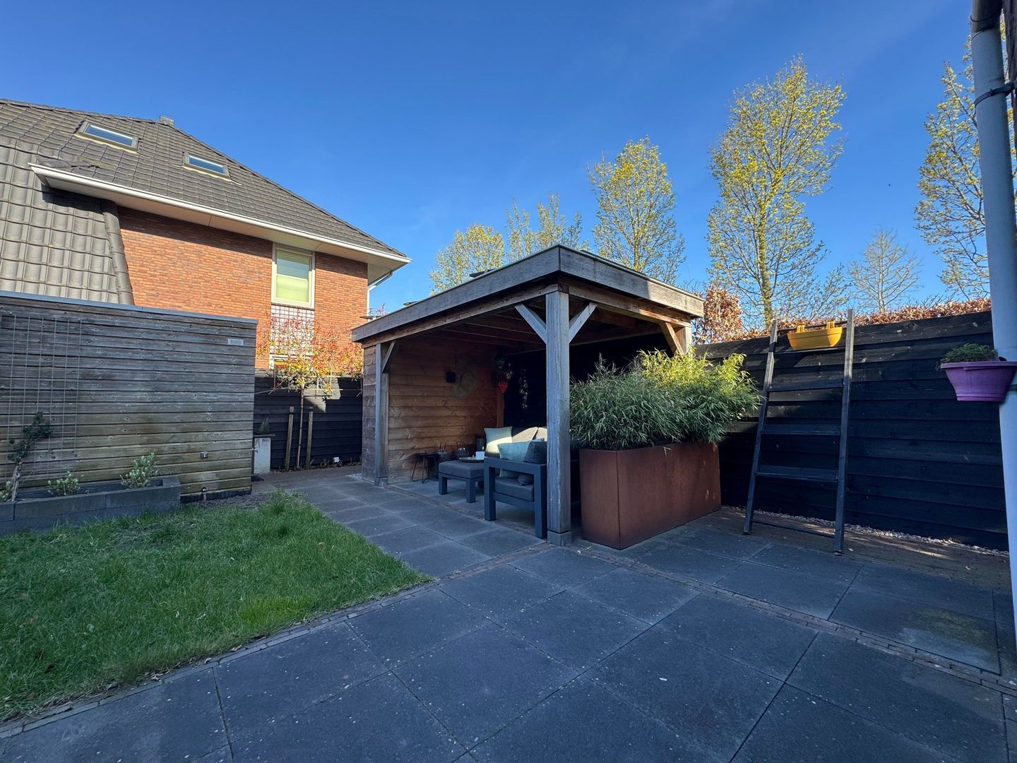 Buiten; De besloten achtertuin met overkapping, inclusief zonnepanelen, is een heerlijke plek om te ontspannen en biedt volop privacy. Ideaal om het hele jaar door van buiten te genieten. De tuin is gelegen op het zuid-westen waardoor er veel zon is. Er is een schuur die, door de achteringang, gebruikt kan worden voor fietsen en overige opslag.